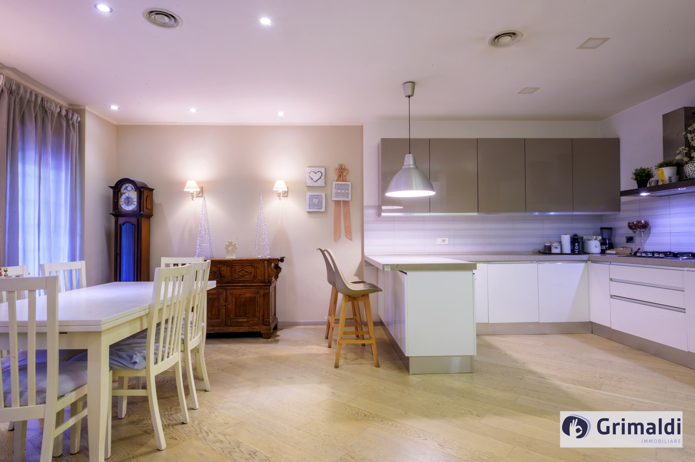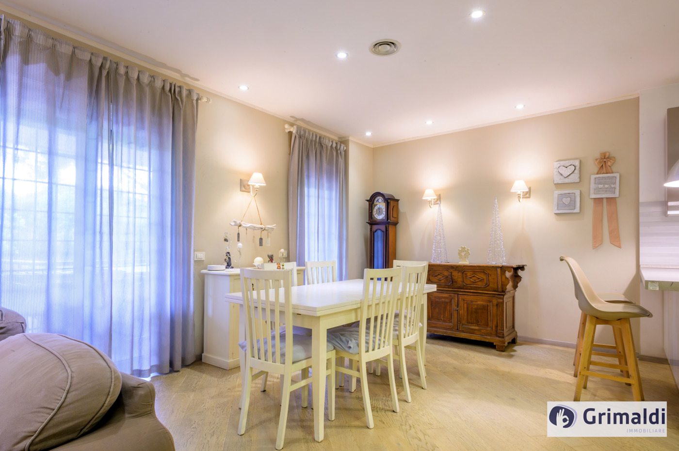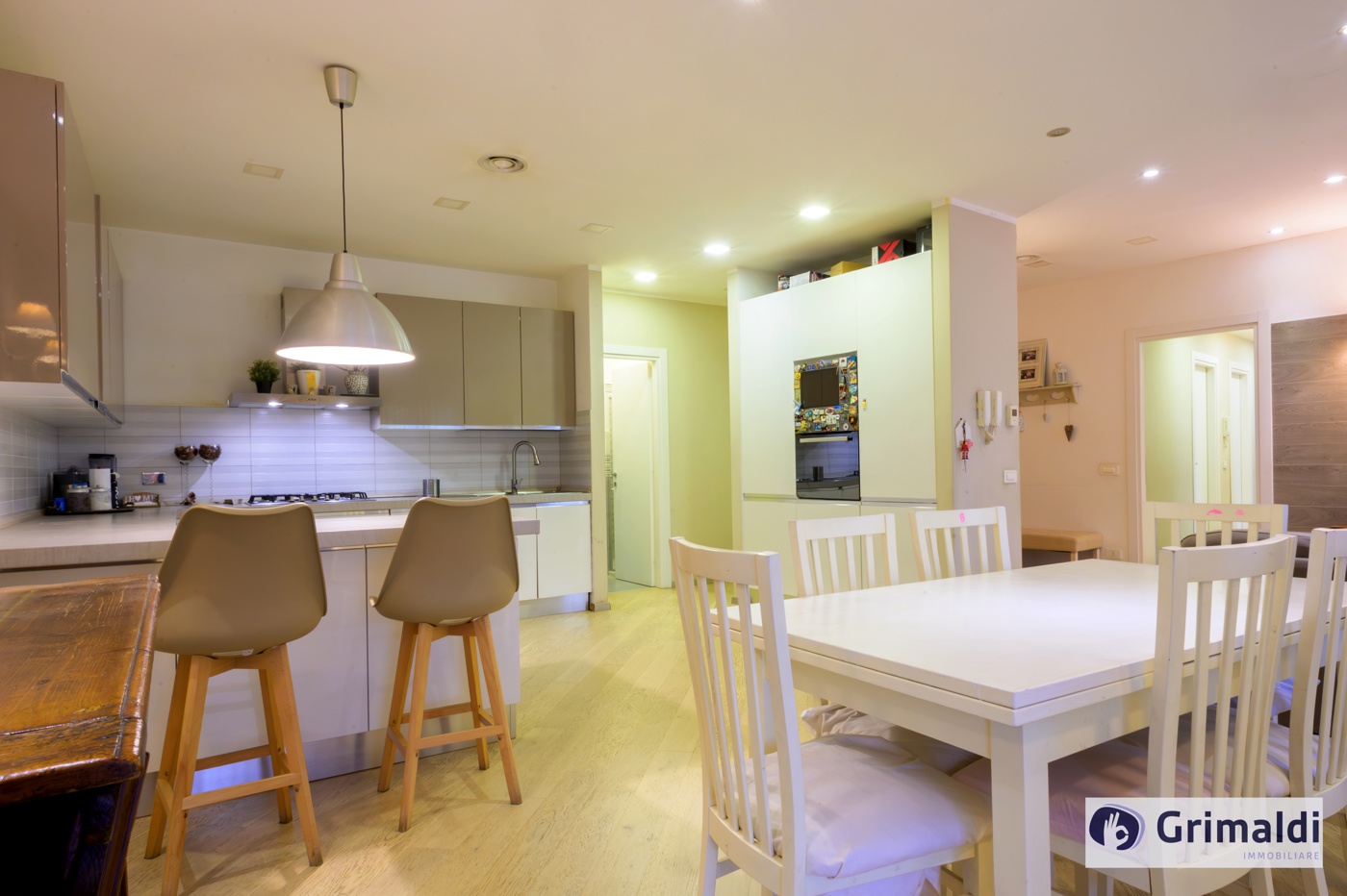 La propriet consiste di salone doppio con cucina a vista completamente arredata e completa di elettrodomestici, tre camere da letto, uno studio, tre bagni ed una lavanderia.
