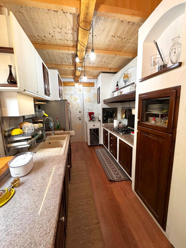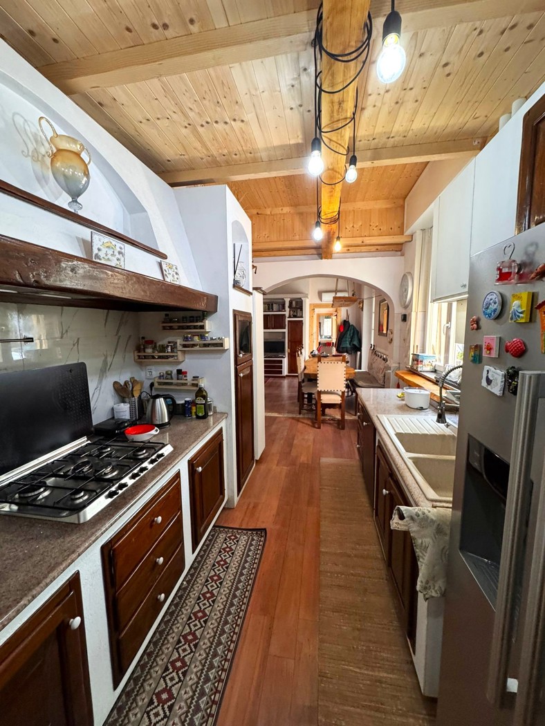 La soluzione si sviluppa al piano rialzato ed composta da ingresso nella zona giorno con cucina a vista e accesso tramite porta finestra allo spazio esterno; disimpegno con accesso alla zona notte composta da tre camere e doppi servizi.