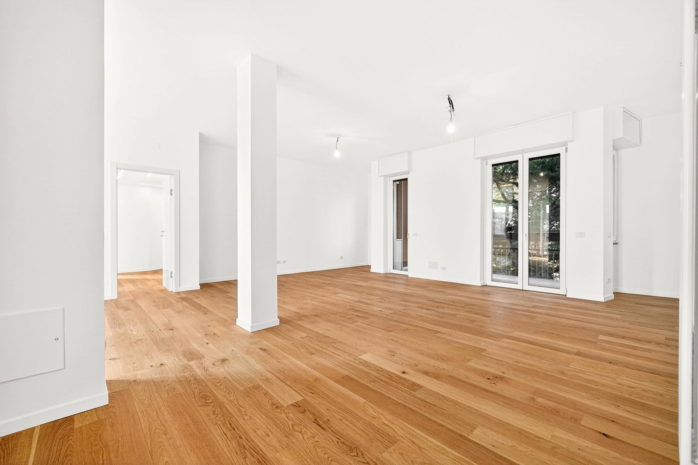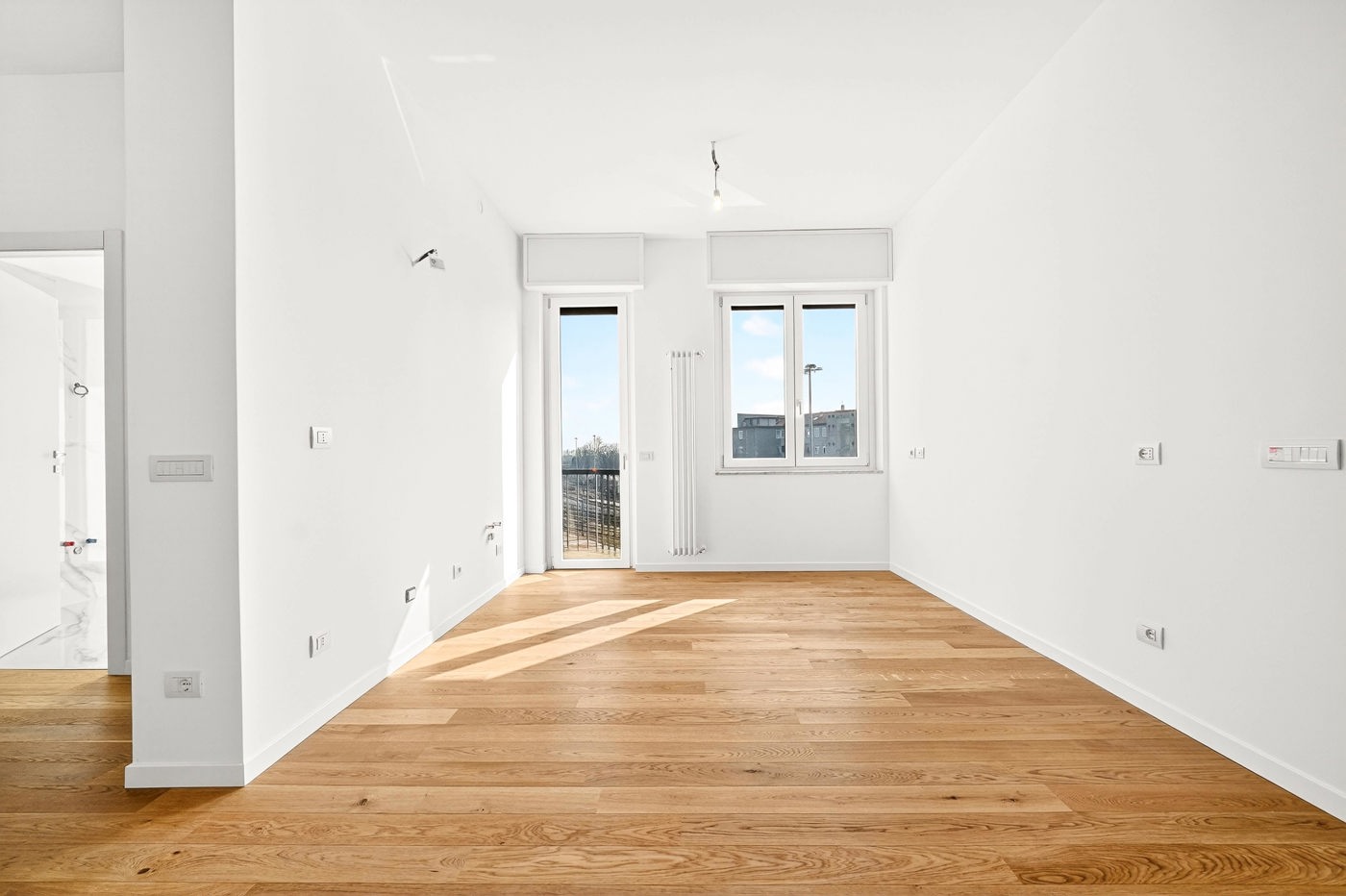 Le finiture sono moderne e di qualit: parquet in rovere spazzolato, infissi Salamander ad alte prestazioni, tapparelle elettriche in alluminio con cassonetti coibentati, impianto elettrico domotico BTicino Living Light, porte interne con chiusura magnetica e pareti con finitura a gesso.