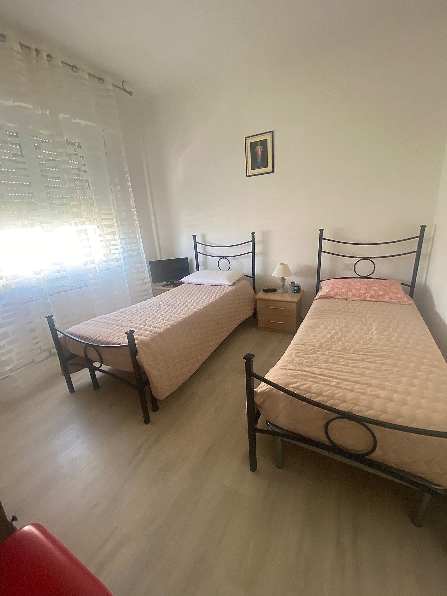 Fronte mare si affitta da ottobre a maggio appartamento al piano 2° con terrazzo: ingresso in corridoio, soggiorno, cucina, due camere, bagno.