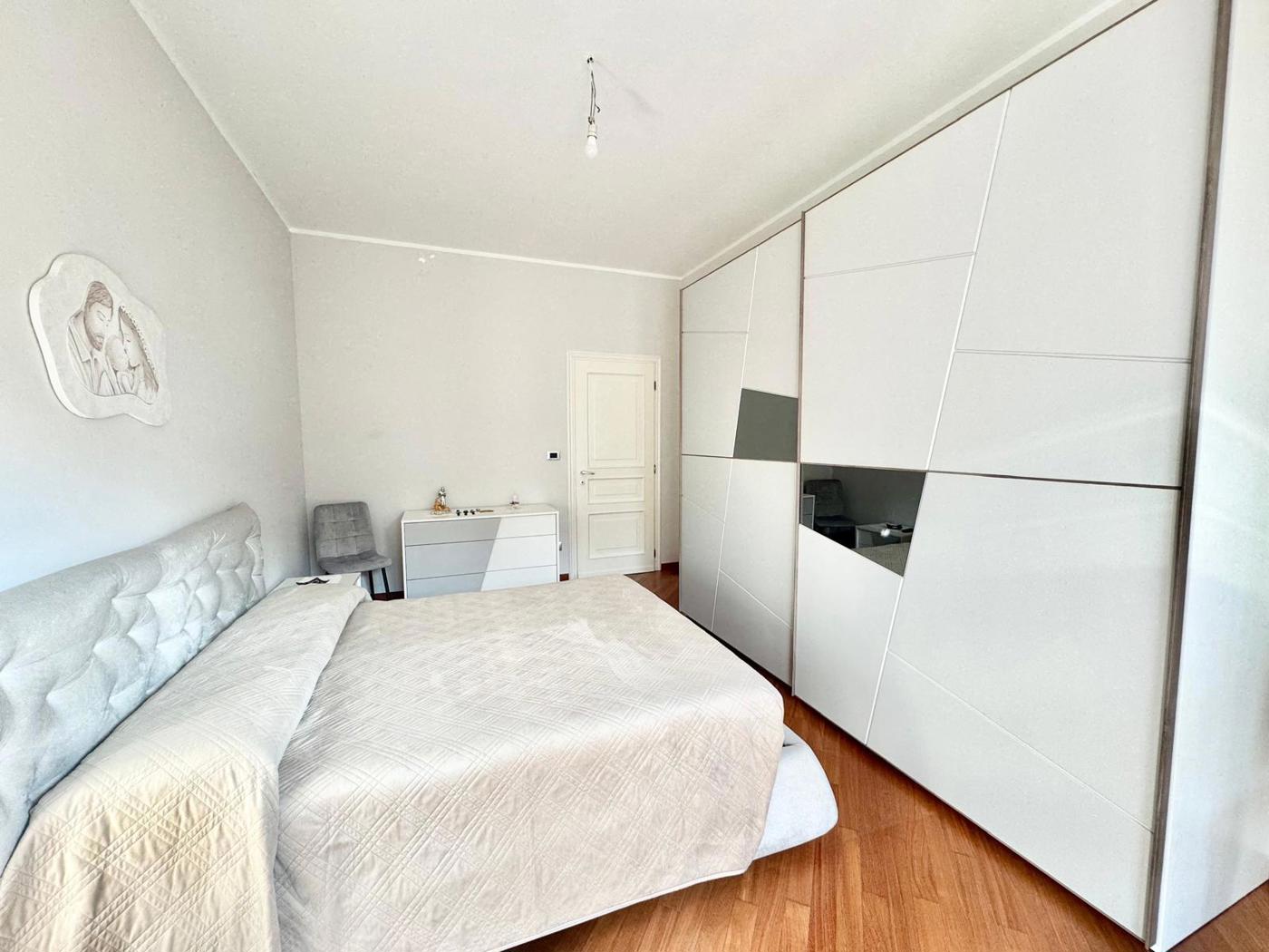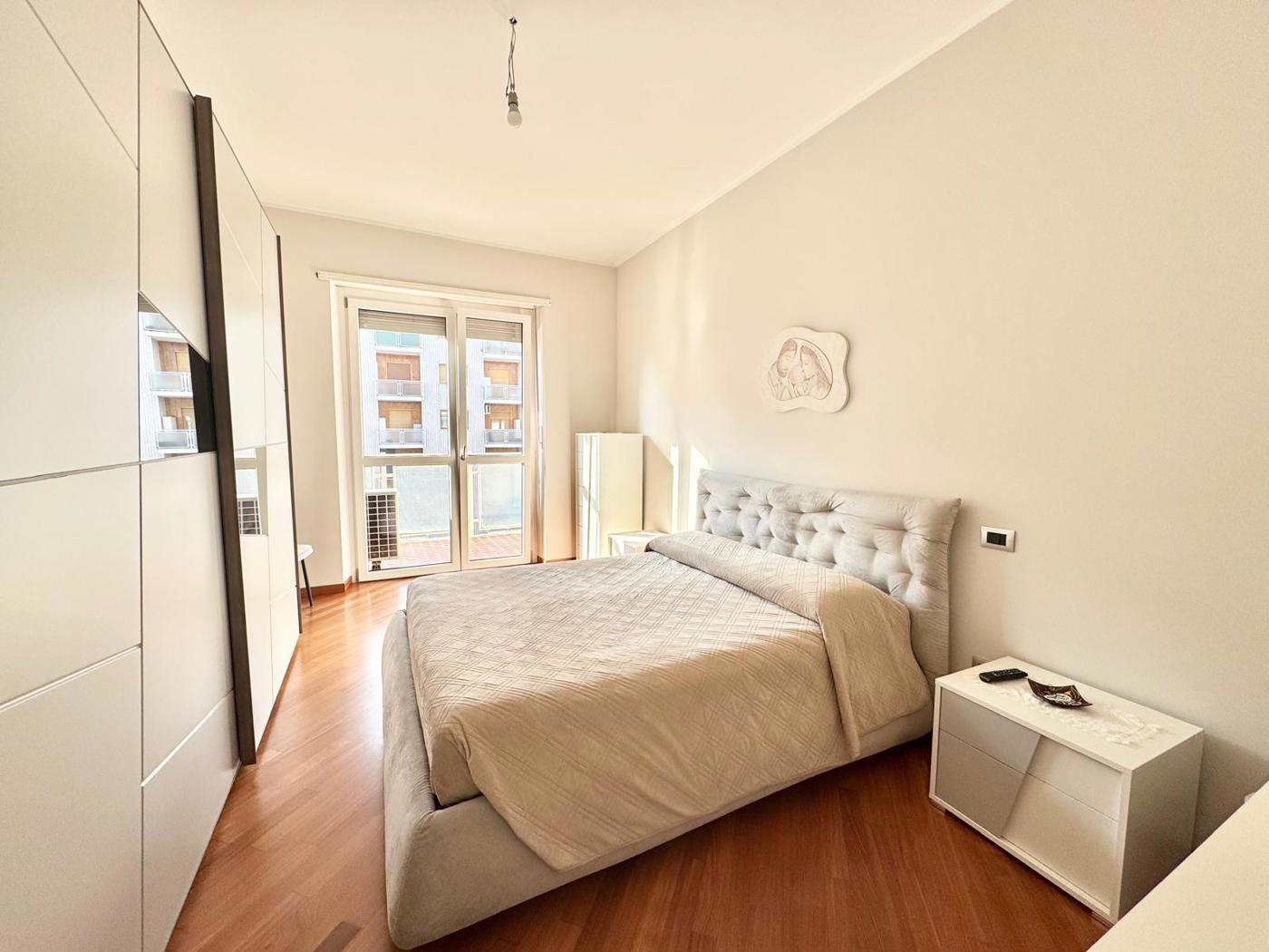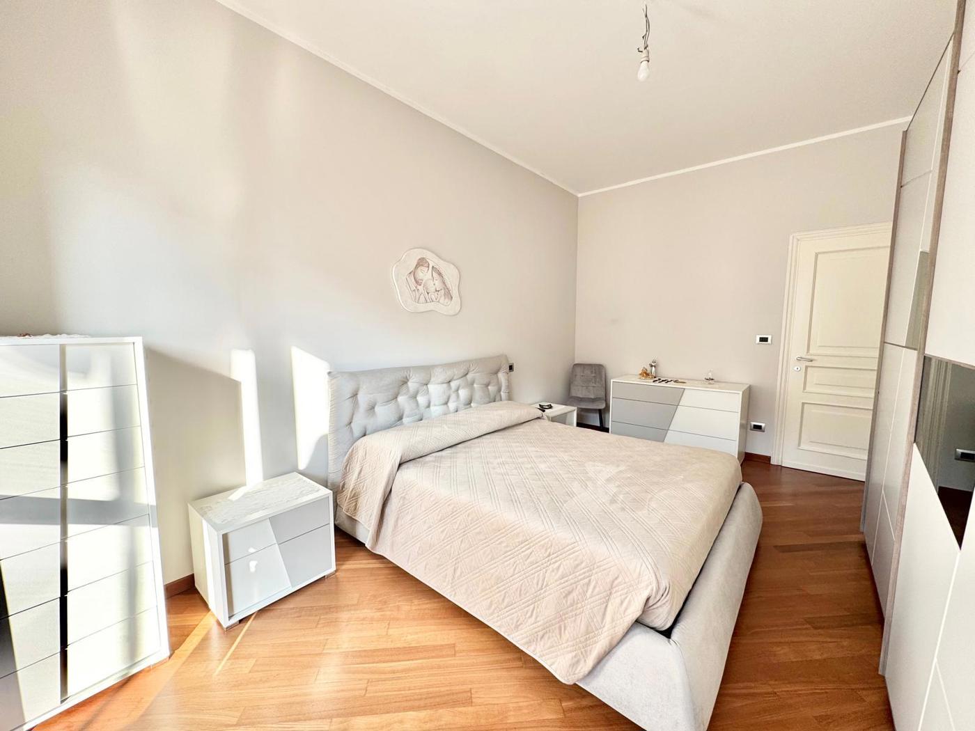 In condominio signorile proponiamo appartamento al piano alto, completamente ristrutturato di recente, composto da: ingresso su soggiorno con cucina a vista, due grandi camere da letto matrimoniali, bagno e ripostiglio.