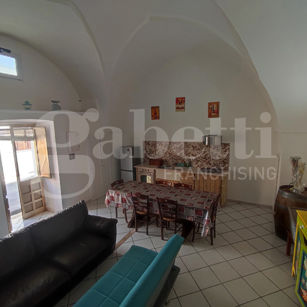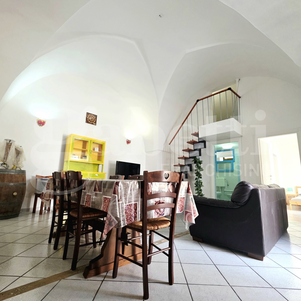 L'appartamento sito nei pressi di Via Messapica e di Piazza Pietro Colonna, ha esposizione angolare, una superficie coperta pari a circa 80,00 mq, e si compone di un ampio vano con copertura 'a stella', adibito come salone con angolo cottura in muratura, bagno e cameretta, mentre la camera da letto matrimoniale si trova al piano ammezzato, raggiungibile da una scala a vista installata lungo uno dei muri del vano 'a stella'. Completa l'appartamento un piccolo box con angolo lavanderia.