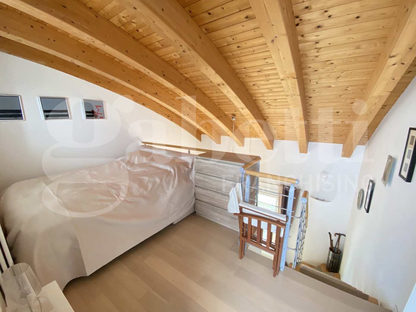 Al secondo piano troviamo il soggiorno/pranzo con accesso alla terrazza, la zona cottura separata con altro terrazzino, camera matrimoniale, camera singola e due bagni; una scala a vista porta al piano superiore con un soppalco con posto letto aperto sul soggiorno ed una terrazza panoramica.