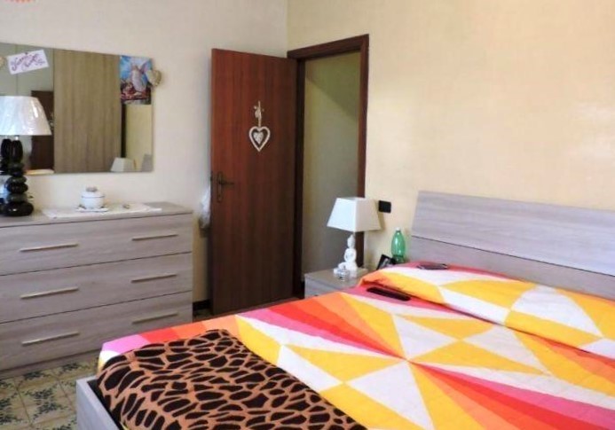 E' diviso in ingresso su soggiorno, cucina abitabile, due ripostigli, due balconi per circa 10 mq, una camera matrimoniale, una camera singola ed un bagno finestrato con doccia.