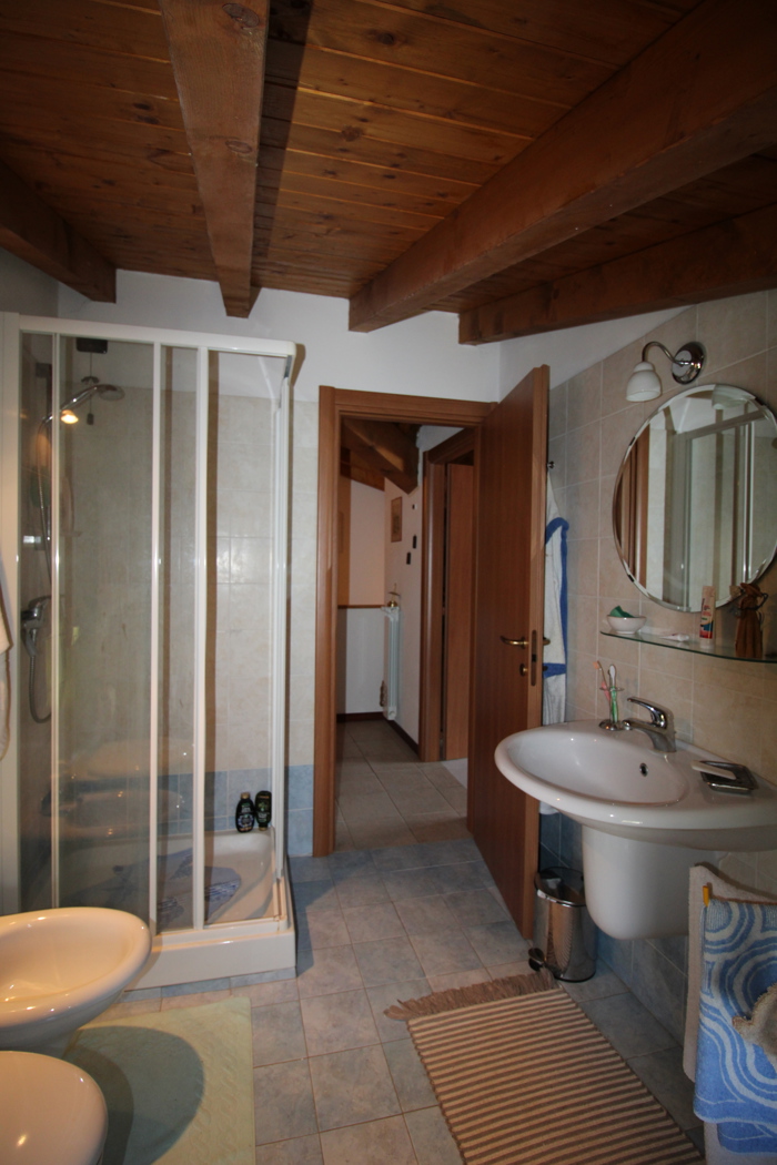 L'immobile cos strutturato: al primo piano disimpegno, antibagno, bagno finestrato con doccia, soggiorno con affaccio sul terrazzo coperto e cucina a vista.