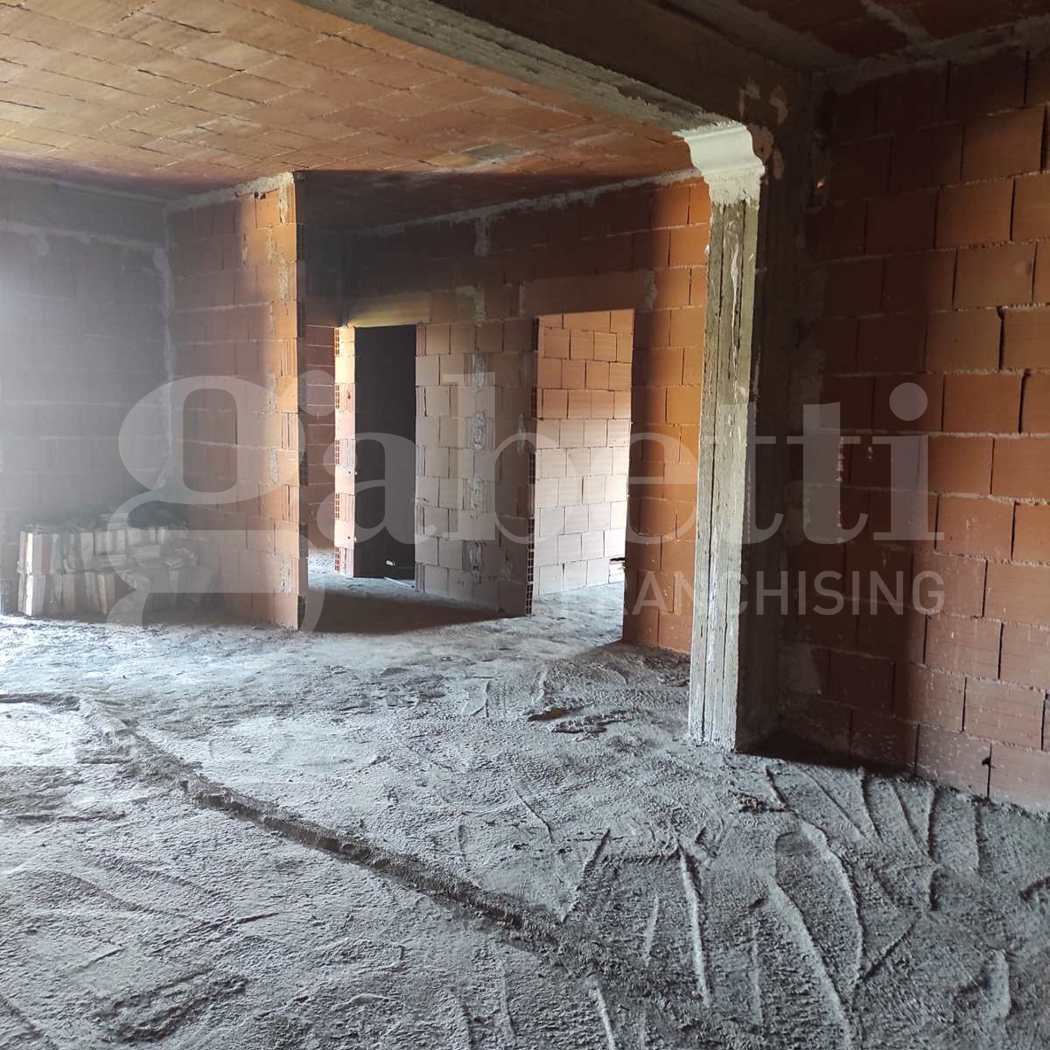 Le tramezzature interne, disegnano un appartamento di circa 120mq suddiviso in un ingresso su ampio salone doppio con affaccio su balcone terrazzato, 2 camere con affaccio su balcone ad est, cucina abitabile e servizio.