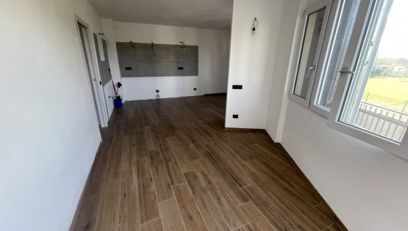 Gli spazi interni sono ben distribuiti, con un luminoso soggiorno, una cucina funzionale, due camere da letto accoglienti e un bagno elegante.