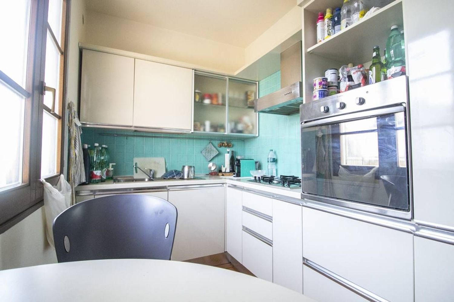 L'appartamento, con esposizione su tre lati, si compone di: ingresso in soggiorno con angolo cottura, una camera matrimoniale, una camera di dimensioni medie, un bagno con doccia e finestra, due balconi a "L" con tripla esposizione.