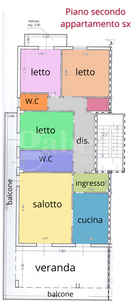 L'unit immobiliare, ampia al suo interno 111 mq e composta da 3 camere da letto, ampio salone, cucina, 2 bagni, comodo ripostiglio e balcone con portico di 55 mq. L'unit immobiliare dotata di impianto di riscaldamento autonomo, infissi in pvc e persiane.
