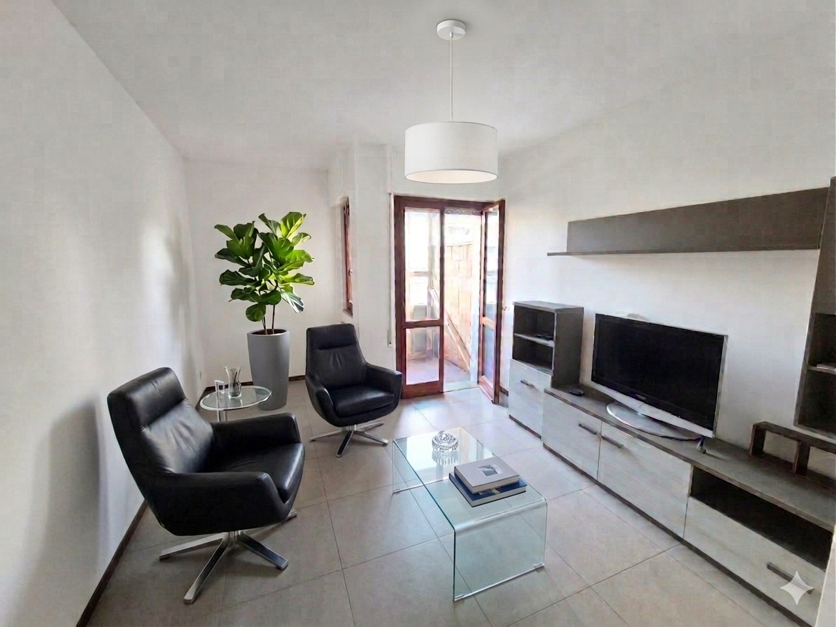 Al suo interno troviamo un'ampio ingresso con armadio, un soggiorno con primo balcone, una cucina abitabile con accesso al secondo balcone di servizio anche alle due camere da letto ( matrimoniale e singola ) ed infine il bagno con finestra.