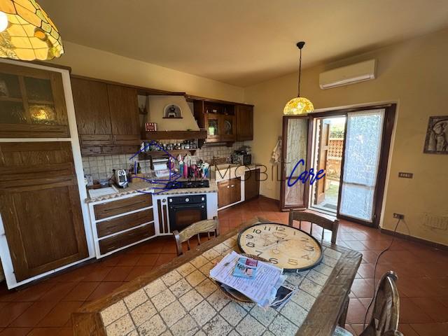 All'interno troviamo l'ingresso che ci conduce in una grande cucina abitabile con angolo cottura in muratura e doppio accesso al giardino esclusivo.