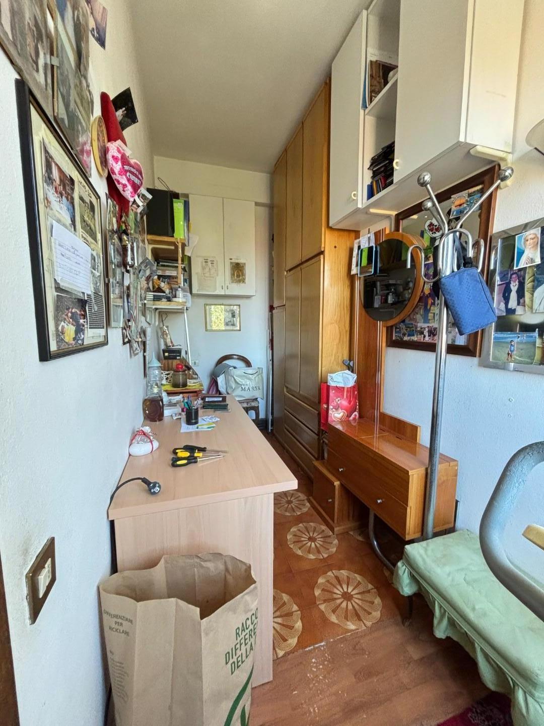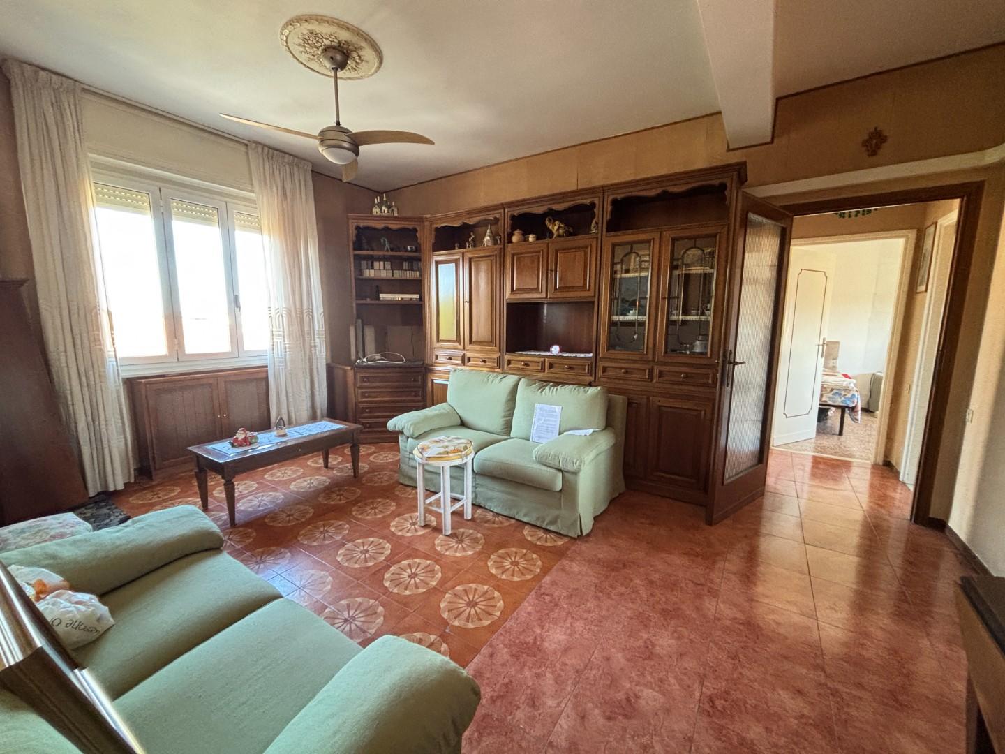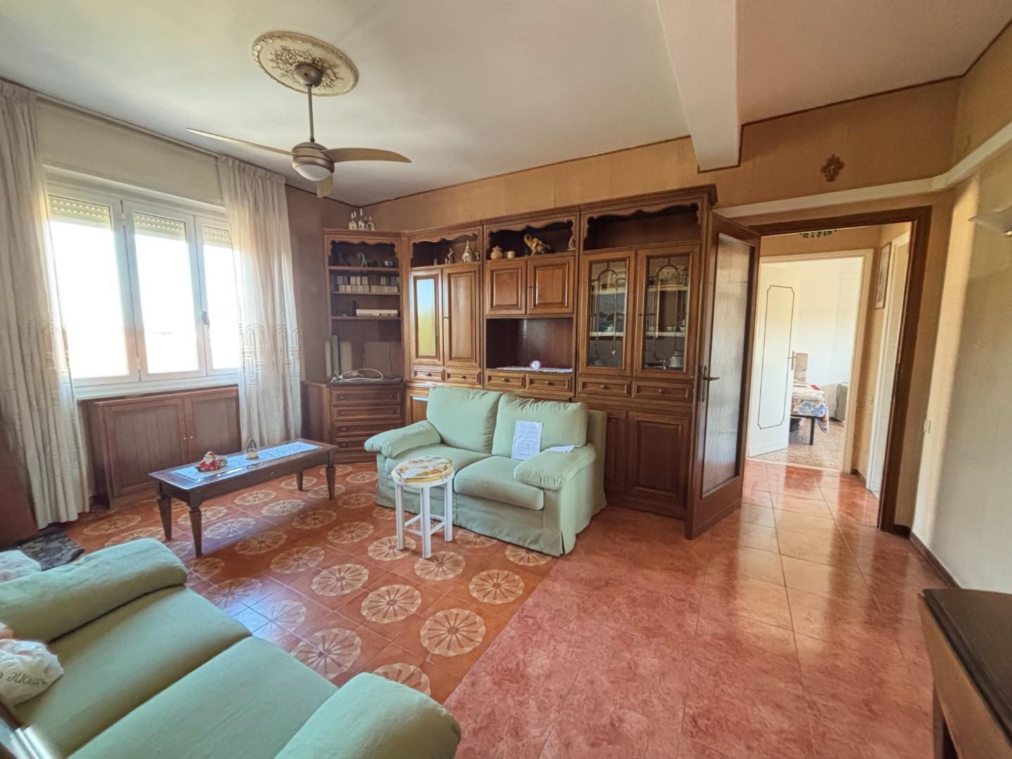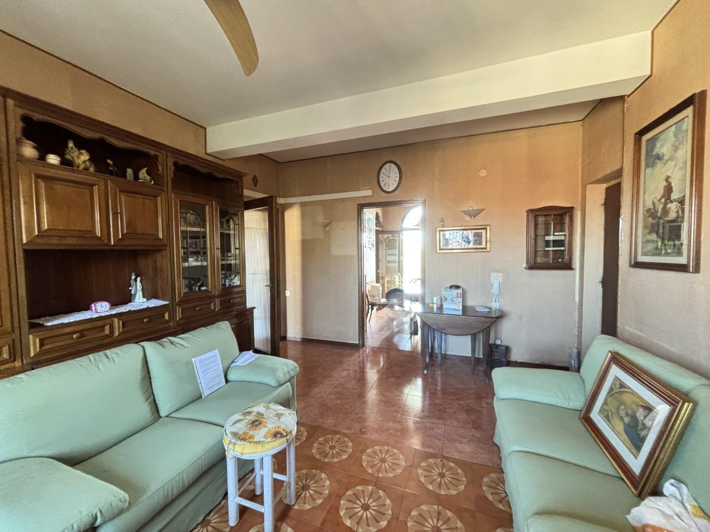 Di taglio tradizionale si compone di ingresso che si apre su di un ampio soggiorno, cucina grande con ripostiglio e balcone verandato, studio, disimpegno notte, due camere da letto: matrimoniale con balcone e doppia, oltre bagno finestrato completamente ristrutturato con doccia.