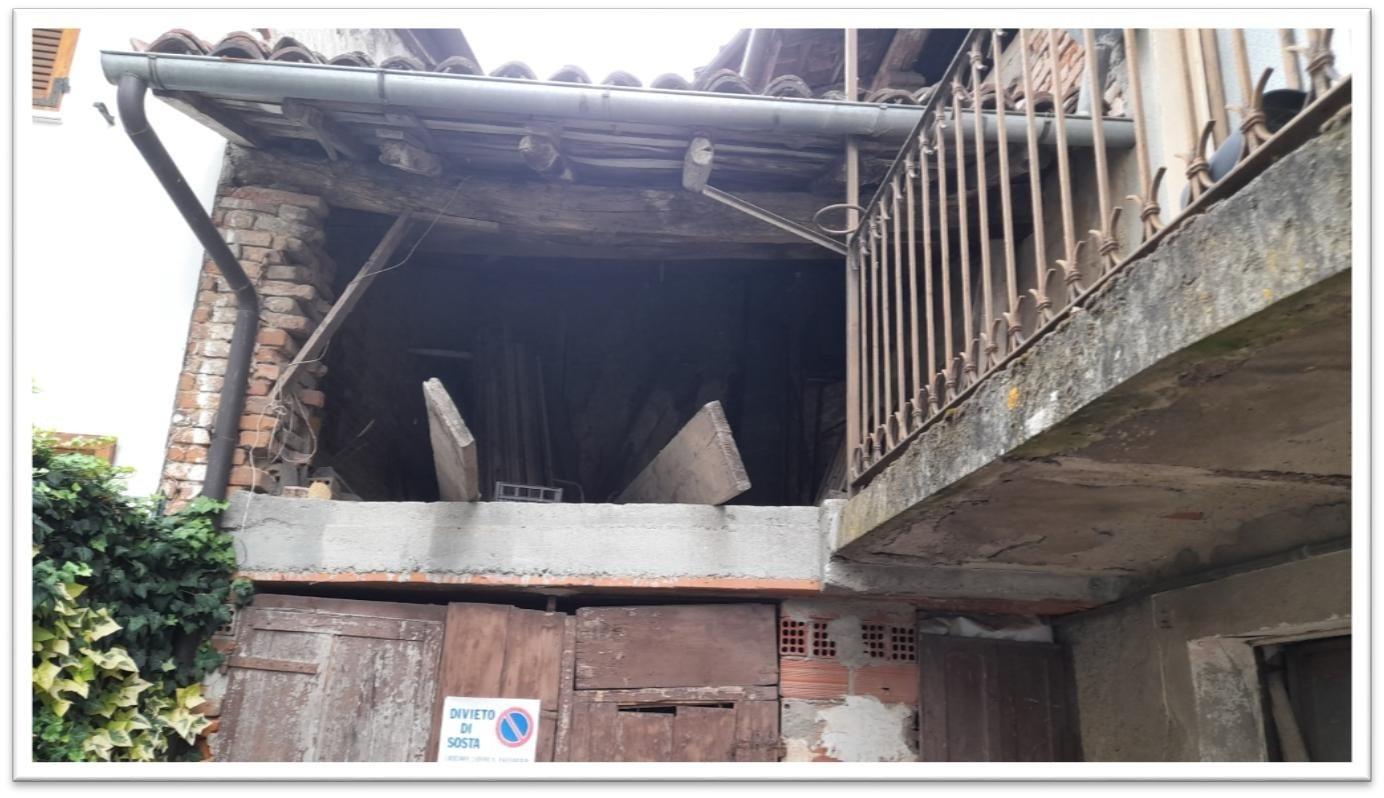 L'unità comprende 4 vani catastali, attualmente adibiti a deposito/magazzino, oltre a un ripostiglio laterale e un piccolo ballatoio sulla facciata principale.