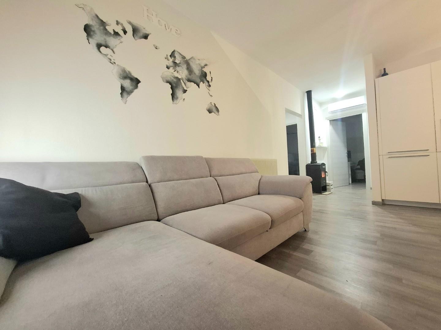 L' appartamento è così composto: ingresso, soggiorno con angolo cottura, disimpegno con angolo lavanderia a scomparsa, camera matrimoniale, seconda camera con cabina armadio ed un moderno bagno con doccia; il tutto corredato da un favoloso arredo minimalista, caratterizzato da colori neutri e linee pulite.
