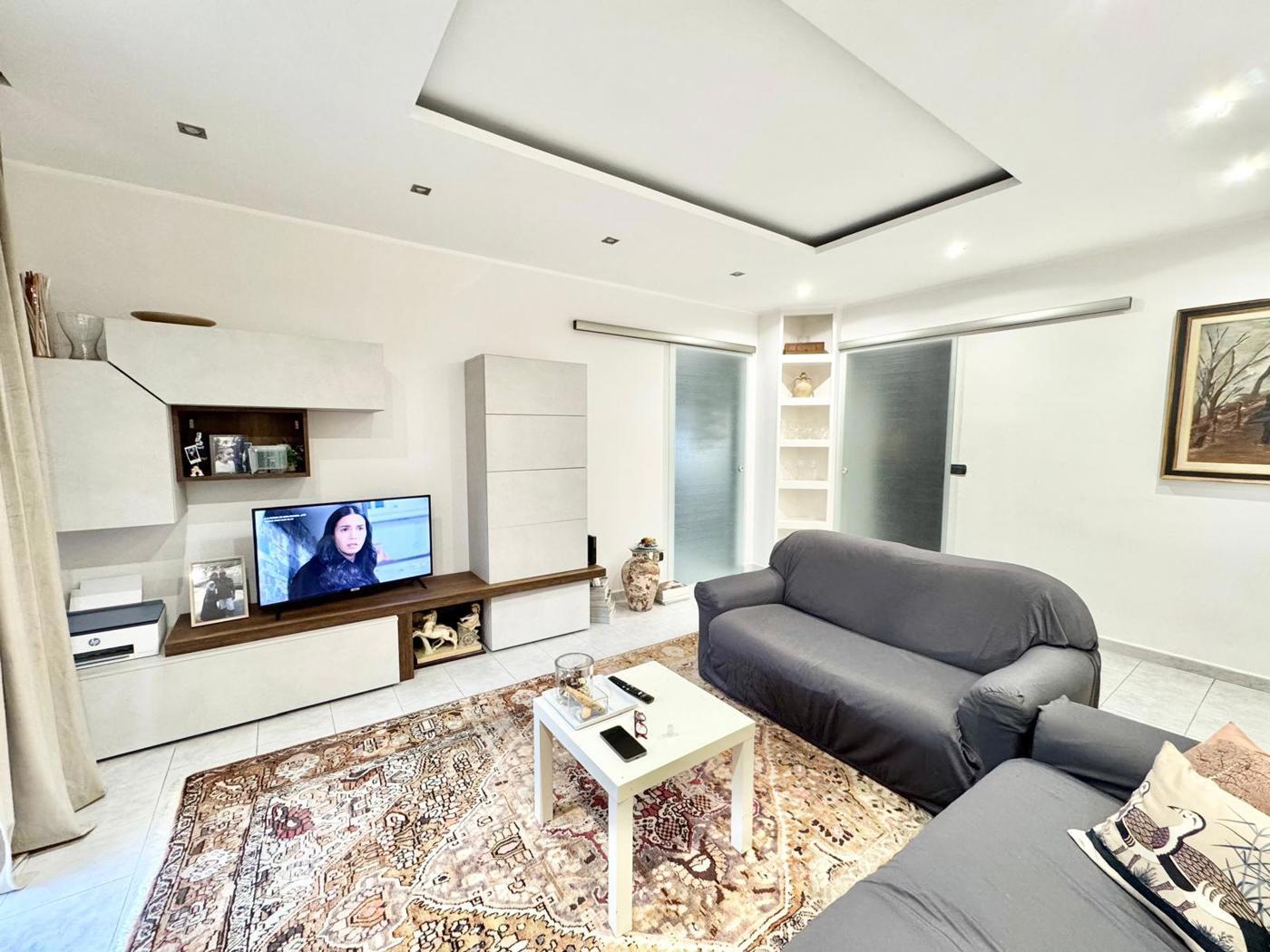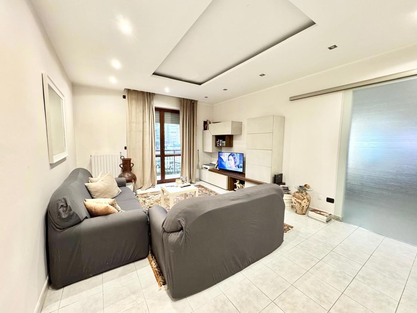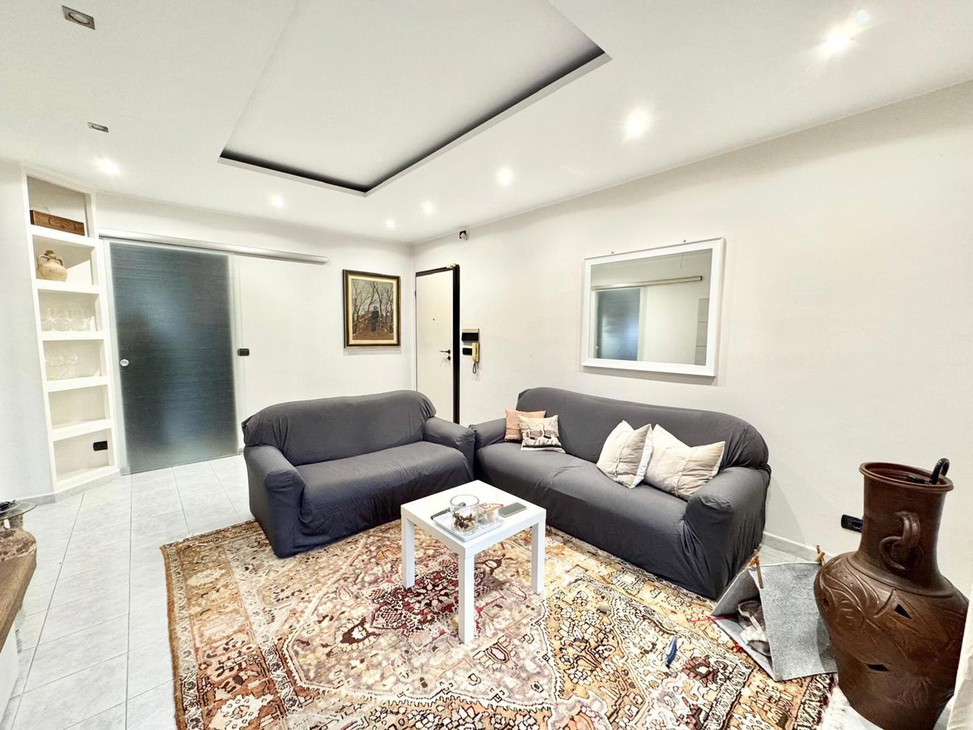 In condominio in paramano degli anni 90 proponiamo appartamento composto da ingresso living su salone, cucina abitabile, due camere da letto, doppi servizi.