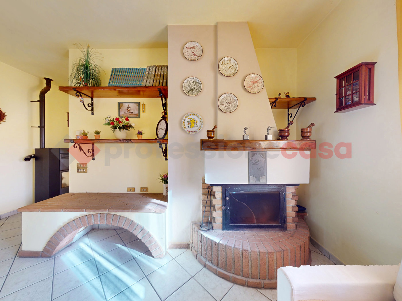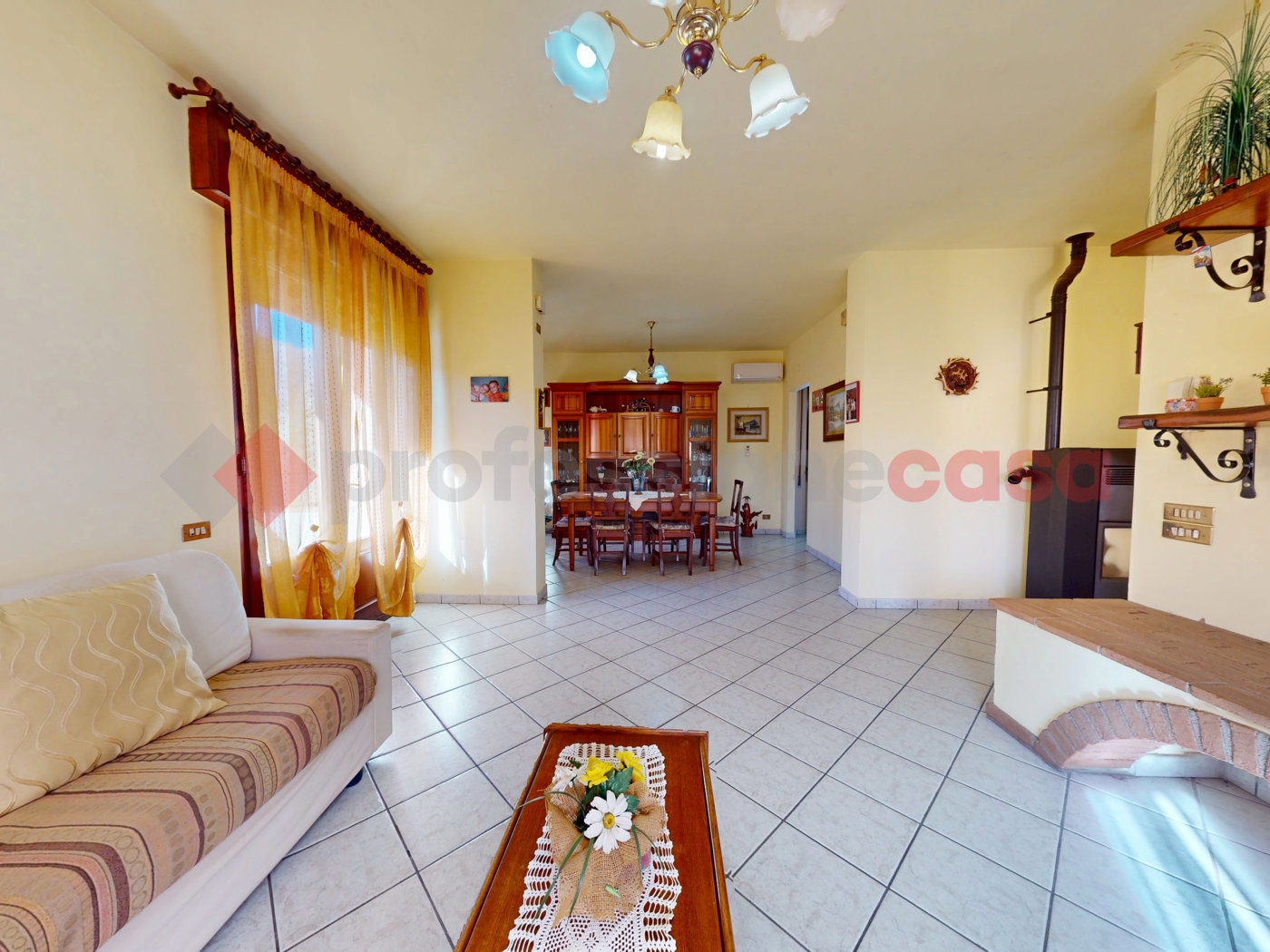 Climatizzazione e Riscaldamento: Sistema di riscaldamento efficiente con termosifoni ad aria alimentati da caldaia a metano, integrato da una stufa a pellet.