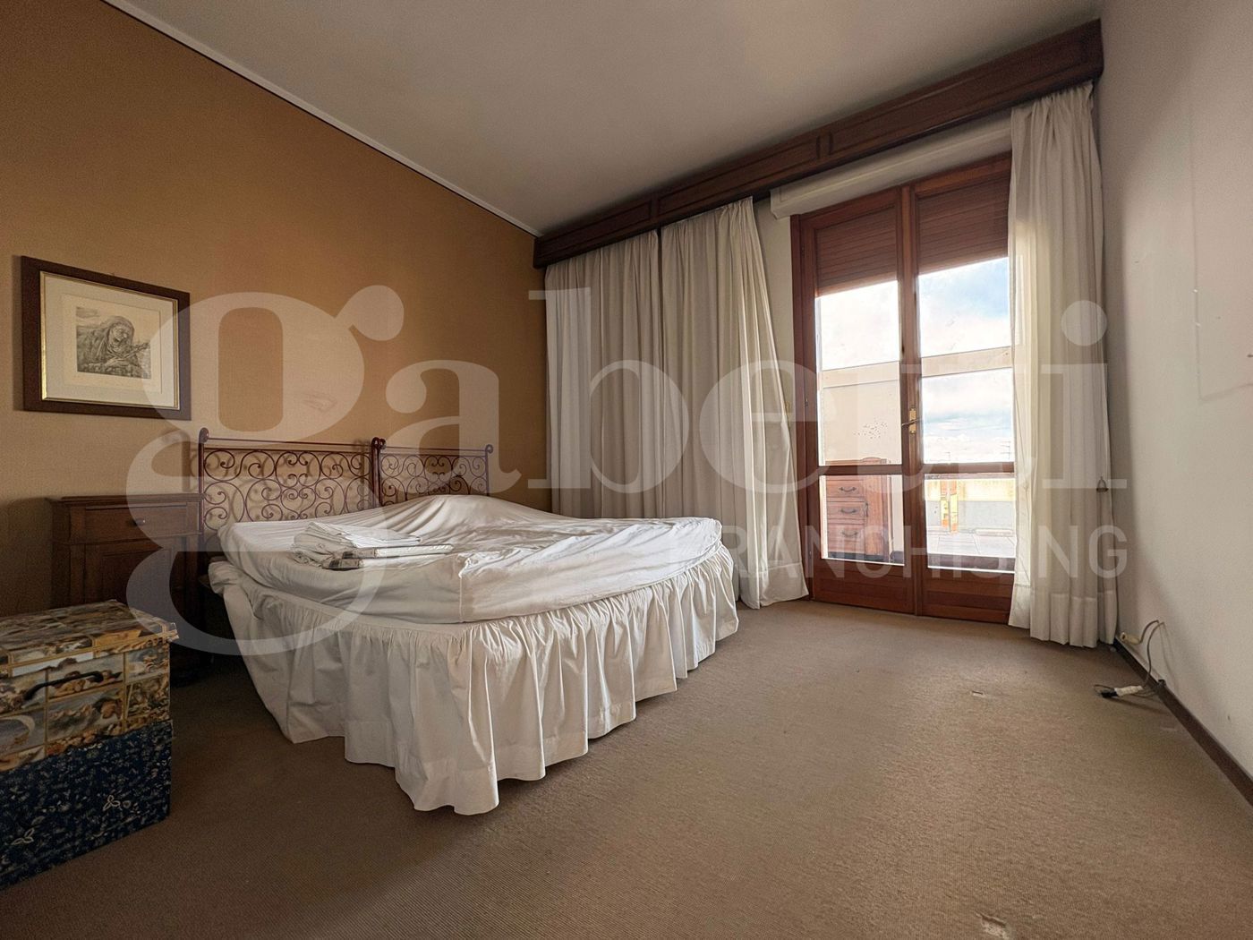 La zona notte composta da due camere da letto, tra cui una matrimoniale con accesso diretto a una seconda veranda e bagno privato.