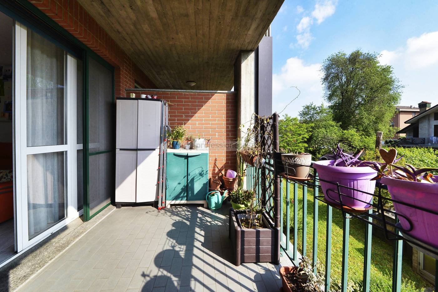 Salone con affaccio su terrazzino di 10 mq, interamente coperto.