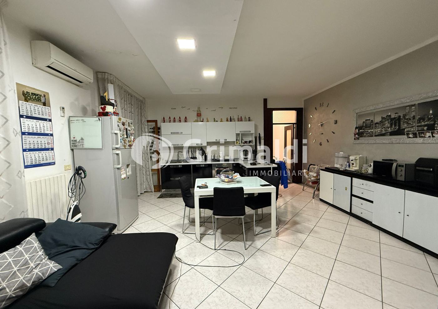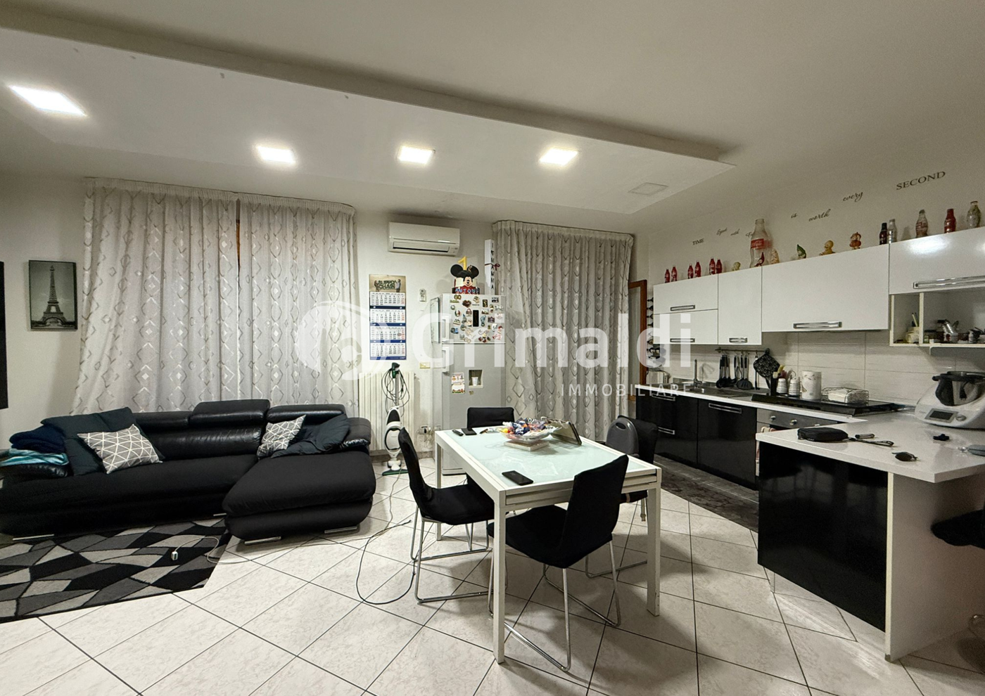 All'ingresso ad accoglierti un grande salone con cucina in stile open space, perfetta per momenti di condivisione e per una gestione moderna degli spazi.