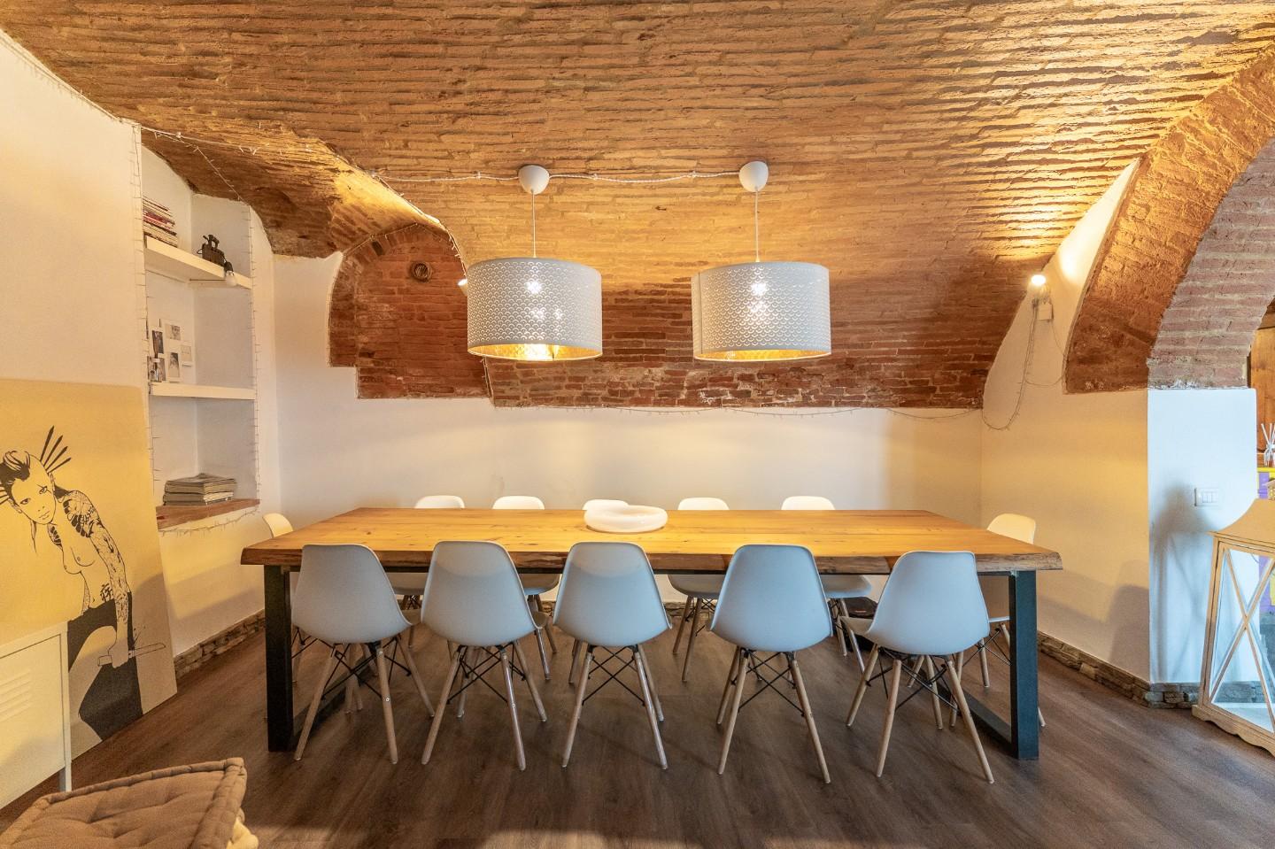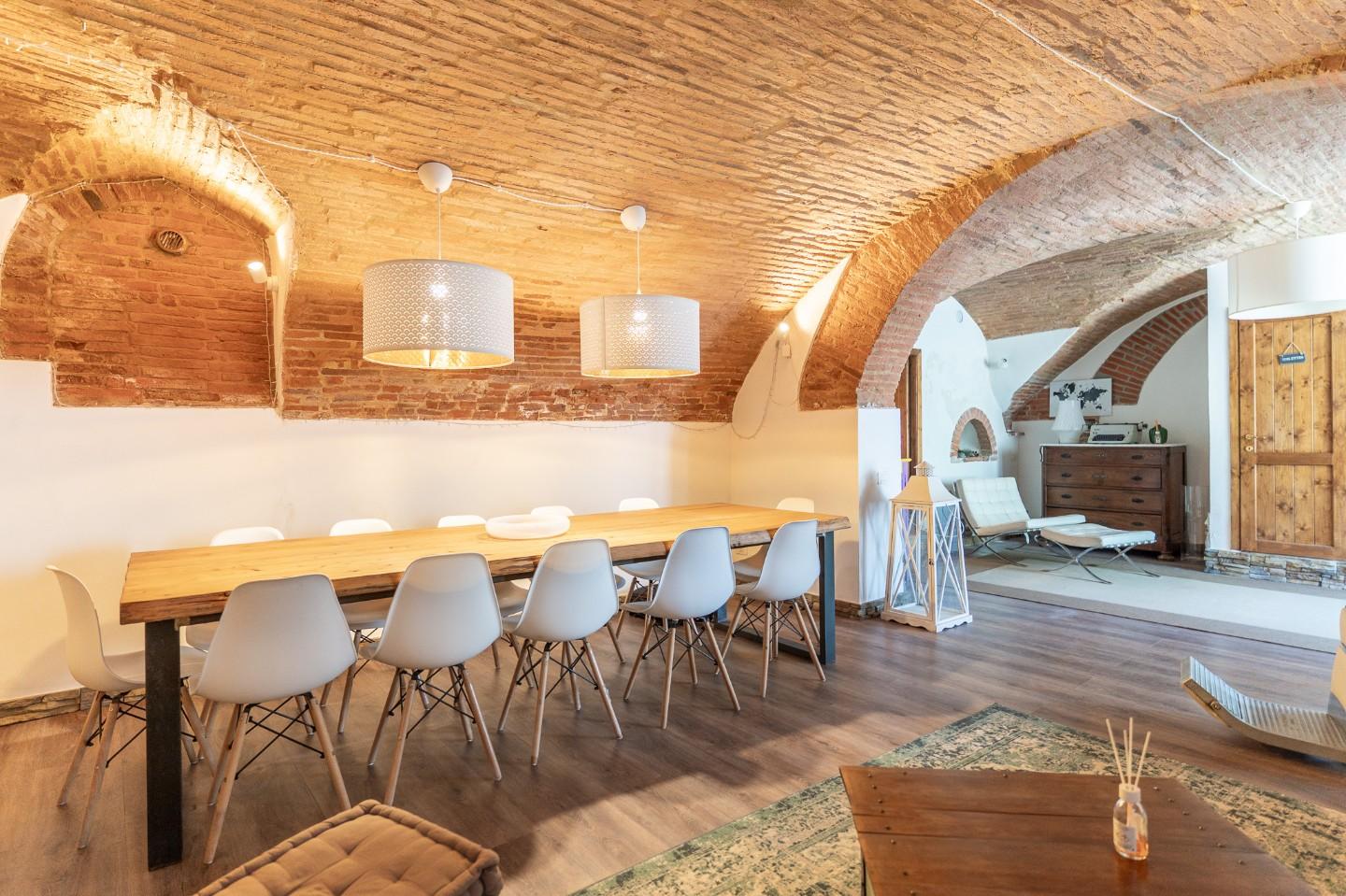 Archi e soffitti a croce in mattoni conferiscono ai suoi spazi un fascino storico e un carattere distintivo.