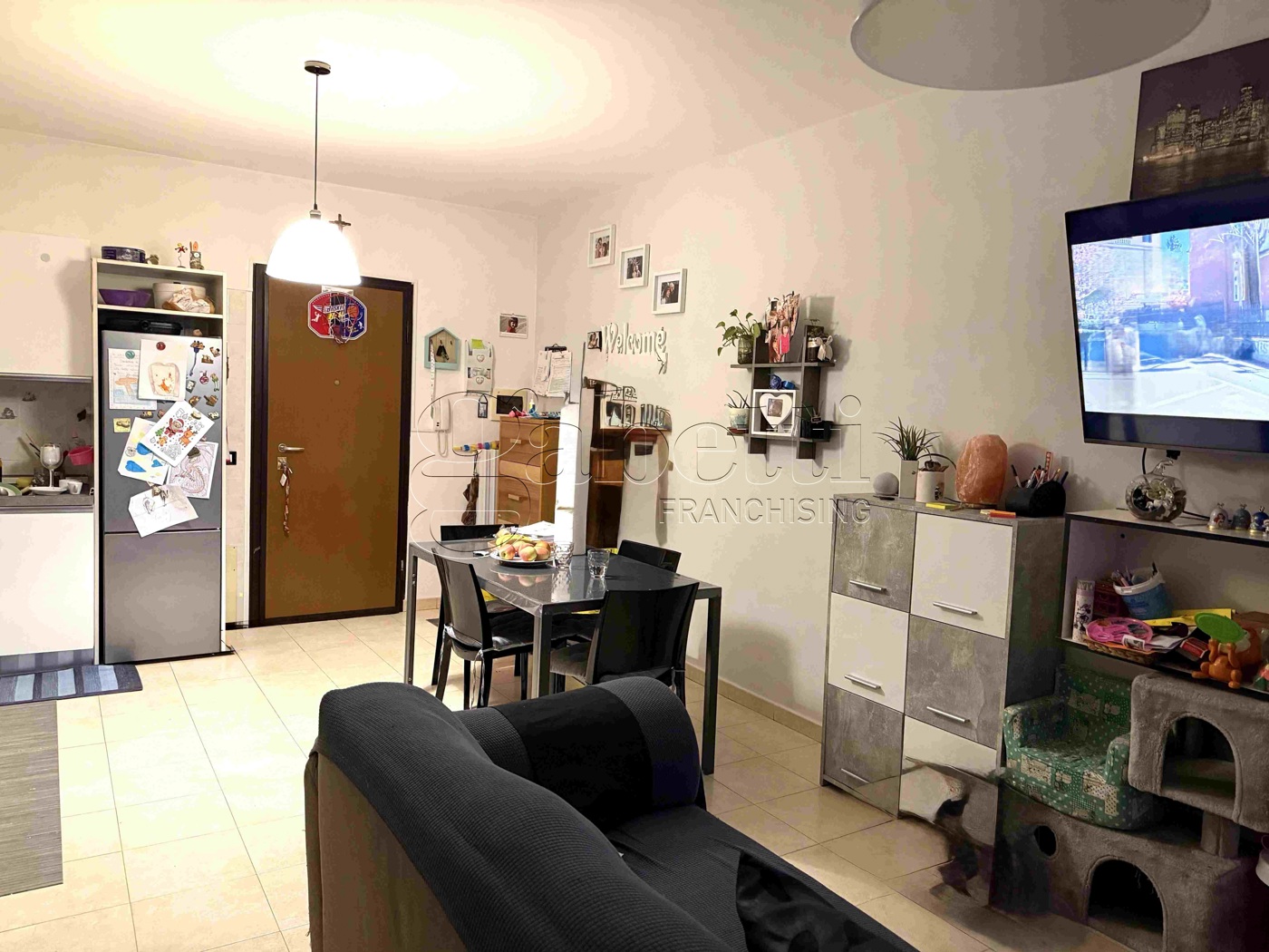 In zona centrale e servita, allinterno di palazzina di recente costruzione in pietra a vista, proponiamo luminoso appartamento con ingresso su soggiorno e cucina a vista, disimpegno, due camere da letto, bagno, loggia e ampio garage.