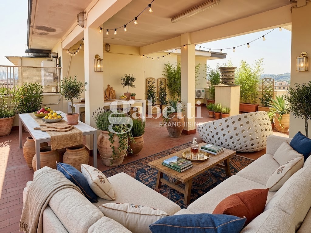 San Jacopino 4 vani con terrazza panoramica Proponiamo in vendita al 7° ed ultimo piano di palazzina anni '60 dotata di ascensore, appartamento composto da ampio ingresso abitabile, zona giorno con cucina separata, due camere da letto, doppi servizi, di cui uno finestrato, tre balconi e ampia terrazza di propriet esclusiva al piano superiore.