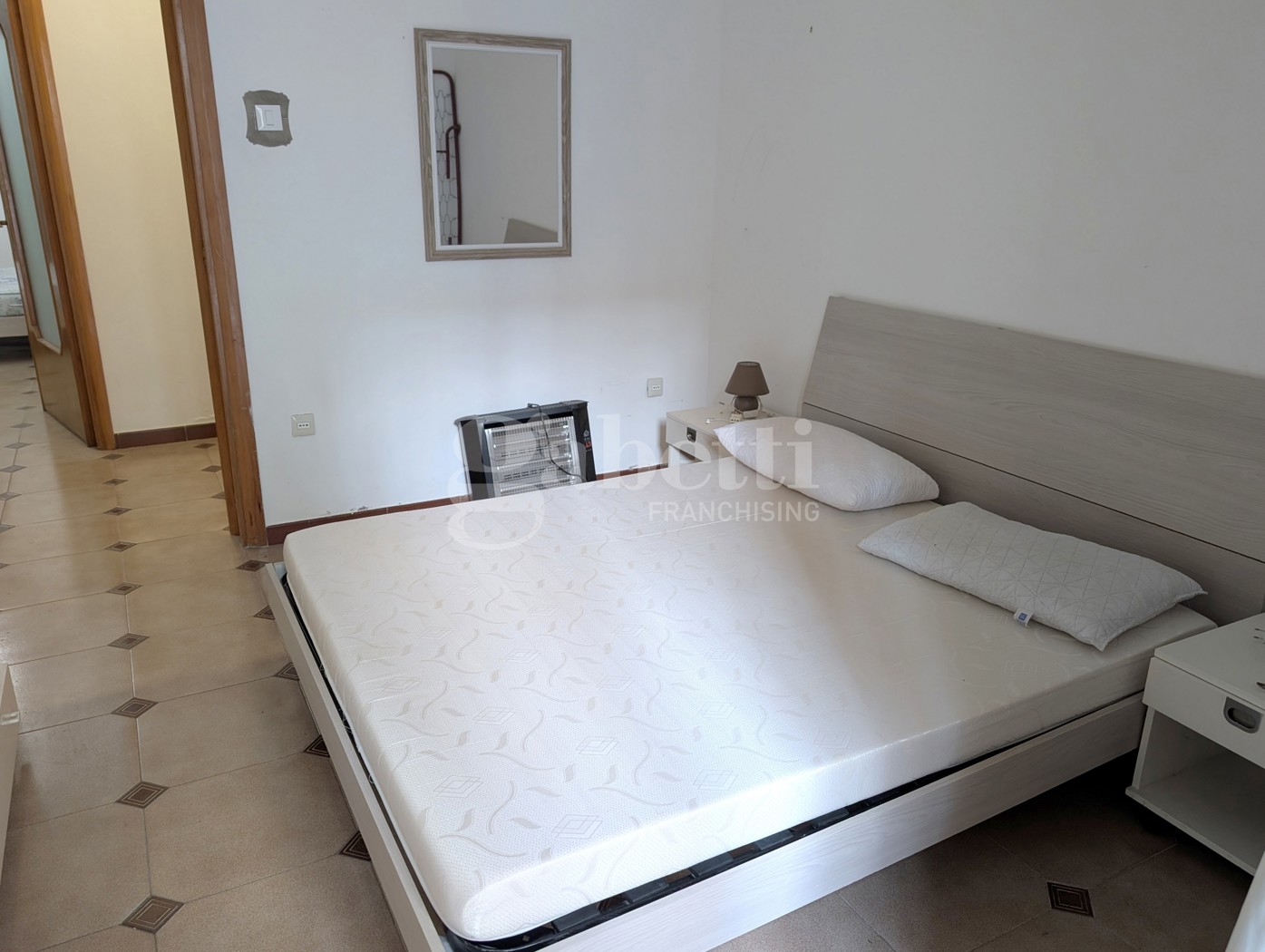 Lingresso si apre su un disimpegno che conduce a due ampie camere da letto di cui una con balcone; proseguendo troviamo il bagno e laccesso a un accogliente salottino, dal quale si entra nella cucina abitabile e in una terza camera da letto.