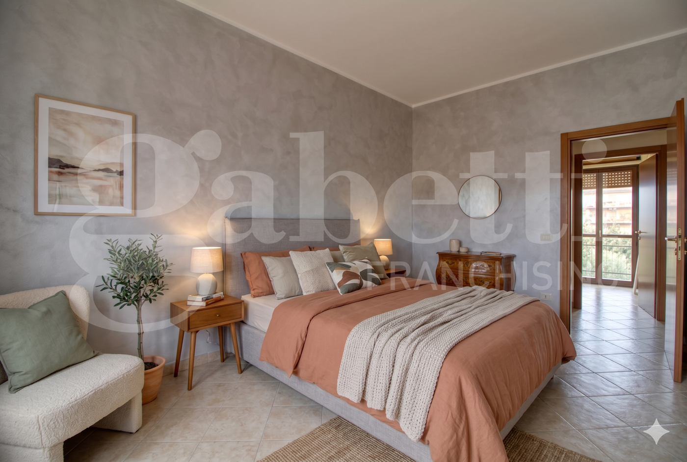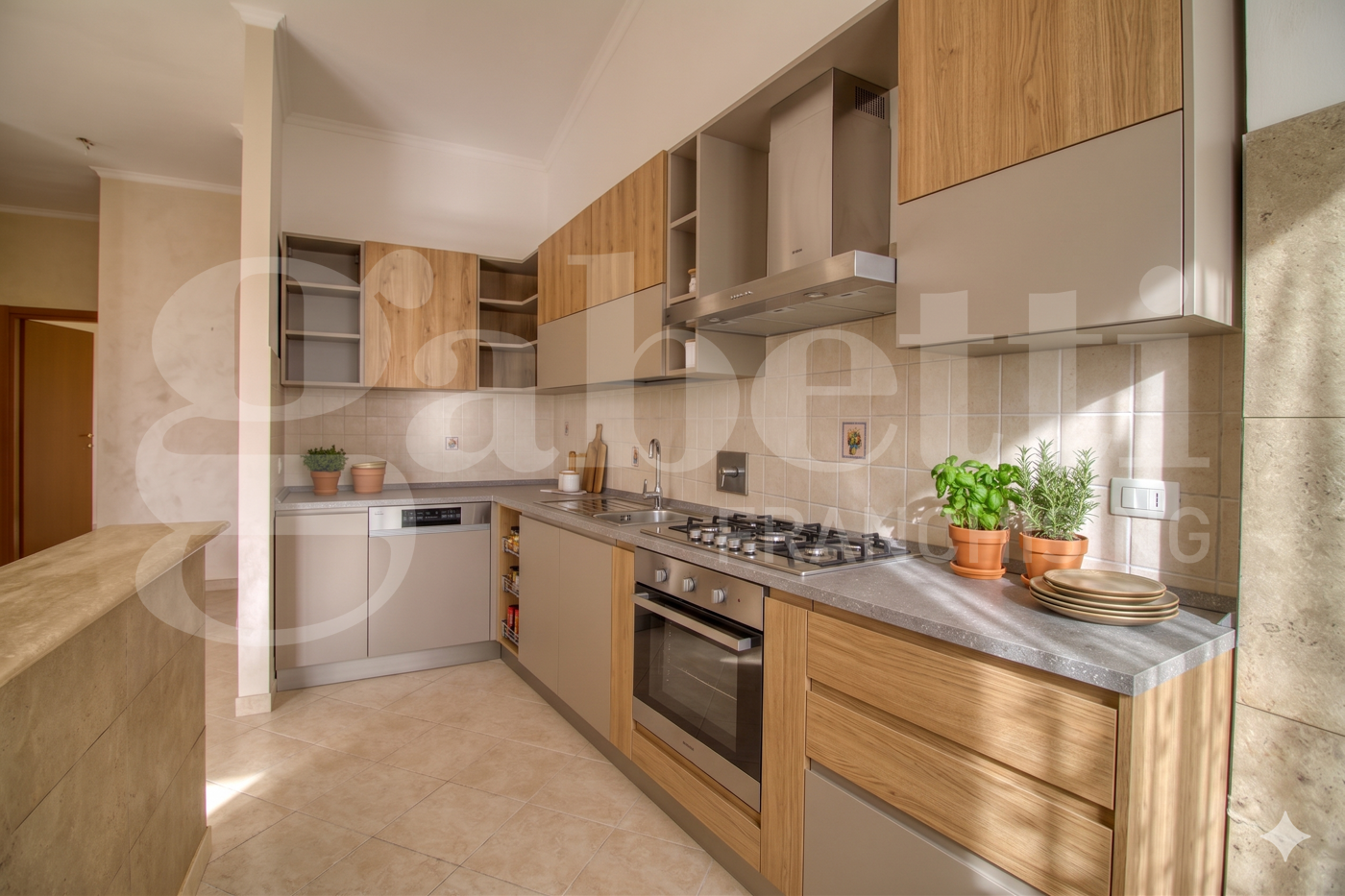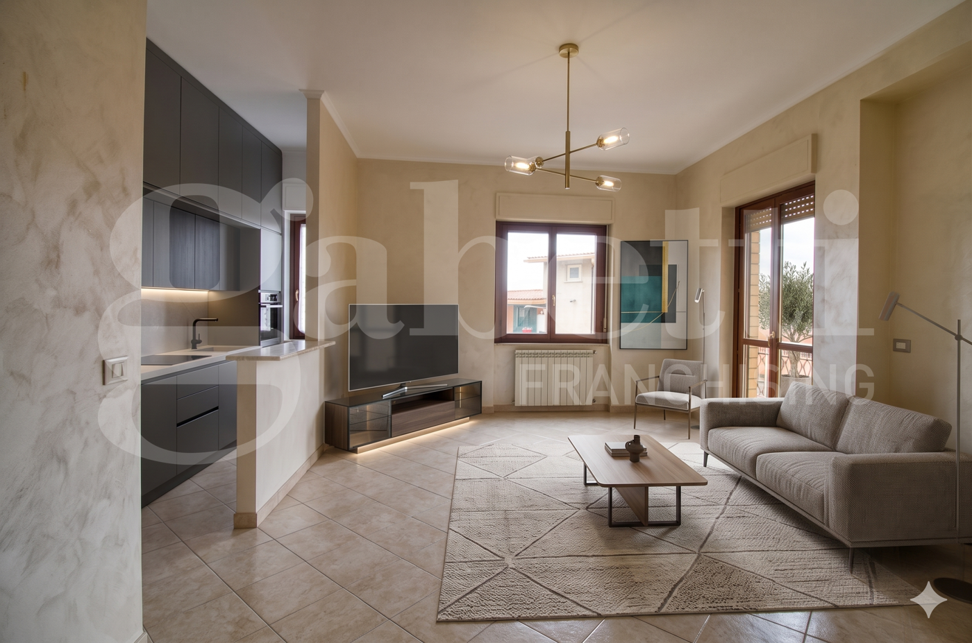 L'immobile si trova al primo piano ed composto da ingresso, soggiorno, cucina a vista, due camere matrimoniali, cameretta, due bagni, ripostiglio e due balconi.