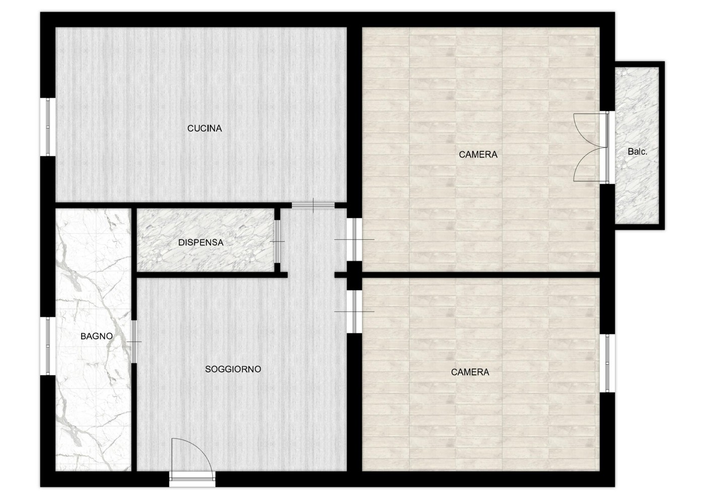 L'immobile, posto al secondo piano, composto da: ingresso in sala, cucina abitabile, 2 camere, bagno e balcone.