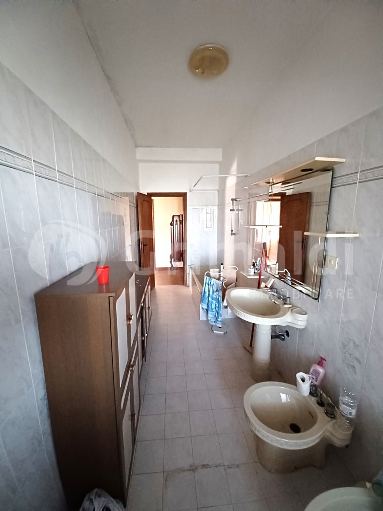 L'immobile posto al primo piano all'interno di uno stabile in tinta esente da spese condominiali e con poche unit abitative, ed internamente risulta cos composto: ampio ingresso, salone doppio di 35mq, due camere matrimoniali, ampia cucina abitabile, bagno, comodo ripostiglio, balcone e terrazzo di 15mq c.a Ad aumentare il confort abitativo vi la presenza di una cantina di propriet di 11mq! Stato interno da ristrutturare.