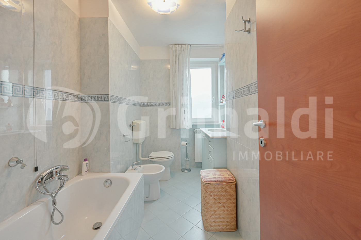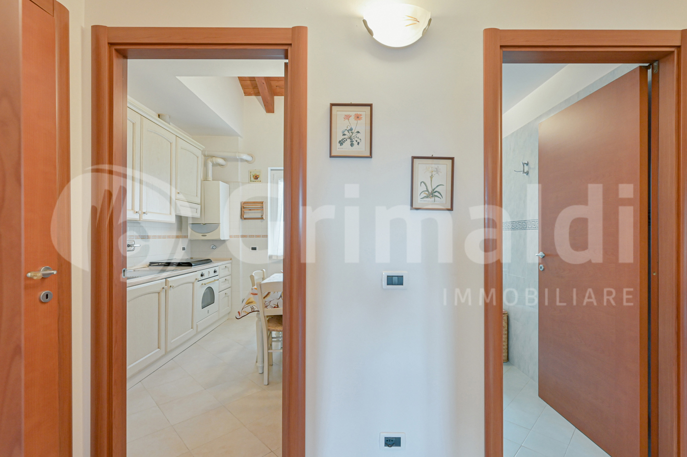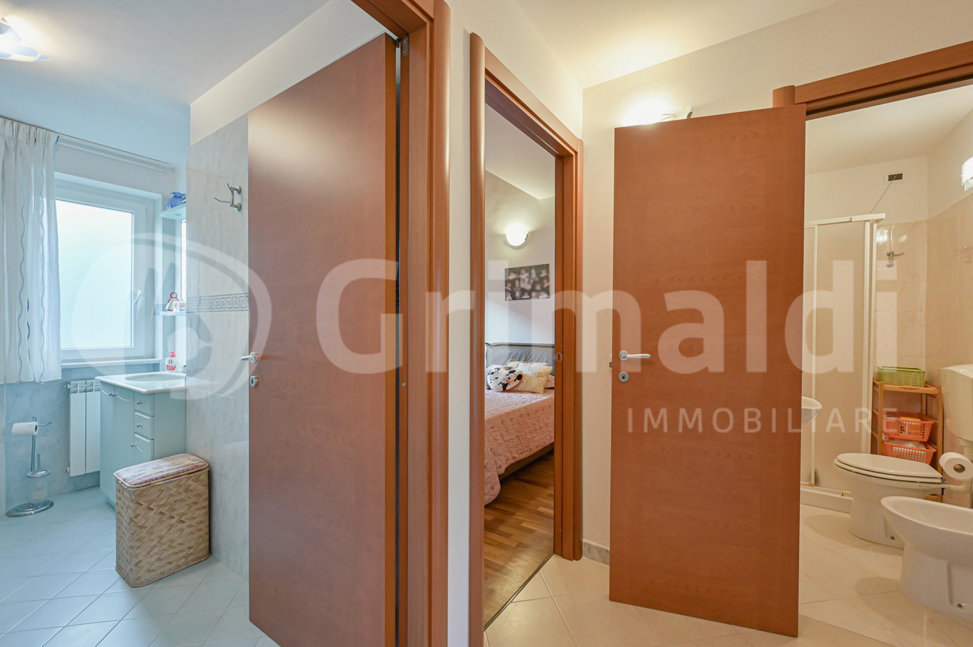 La cucina abitabile e il ripostiglio offrono spazio e funzionalit, mentre le due camere da letto con doppi servizi garantiscono comfort e privacy.