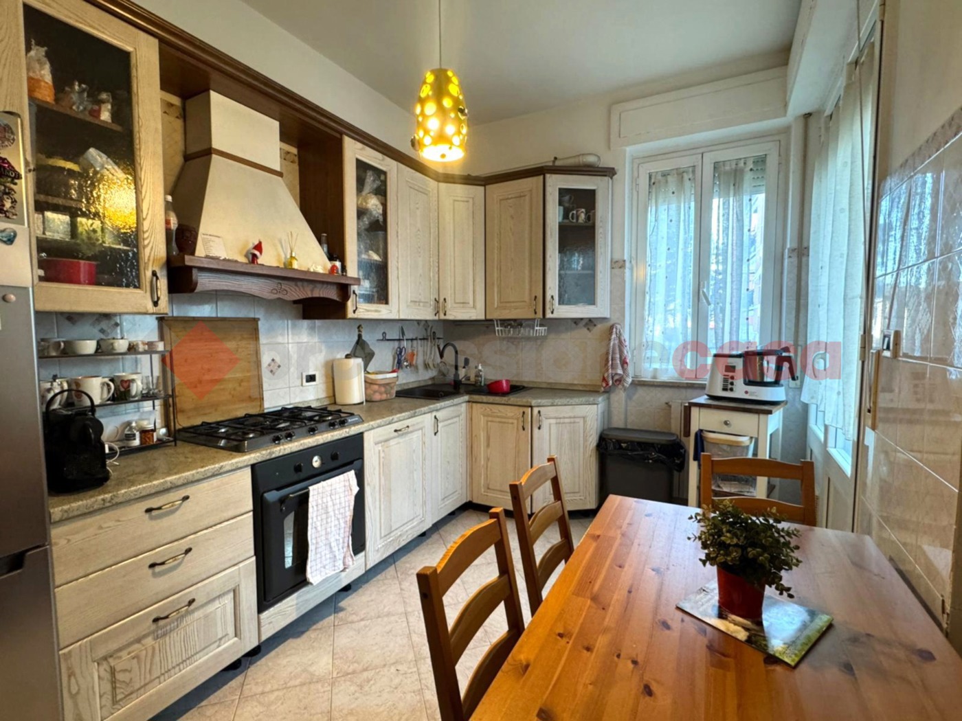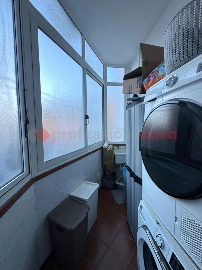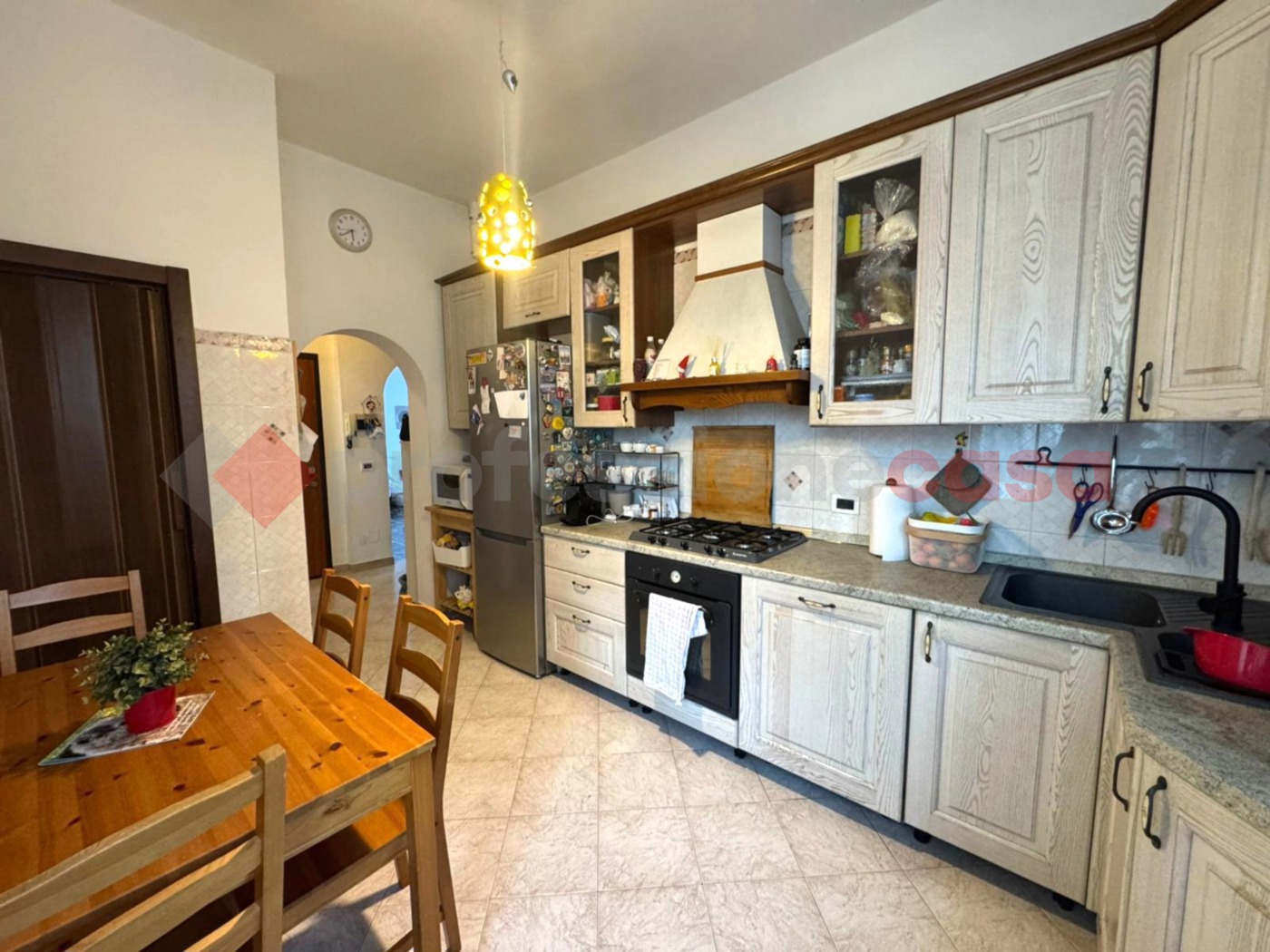 La cucina abitabile, separata, dotata di comodo ripostiglio e collegata a una veranda ad uso lavanderia, elemento pratico che ottimizza la gestione quotidiana della casa. La zona notte composta da due ampie camere matrimoniali, entrambe ben proporzionate e facilmente arredabili, ideali sia per una famiglia che per chi necessita di una stanza aggiuntiva per studio o ospiti.