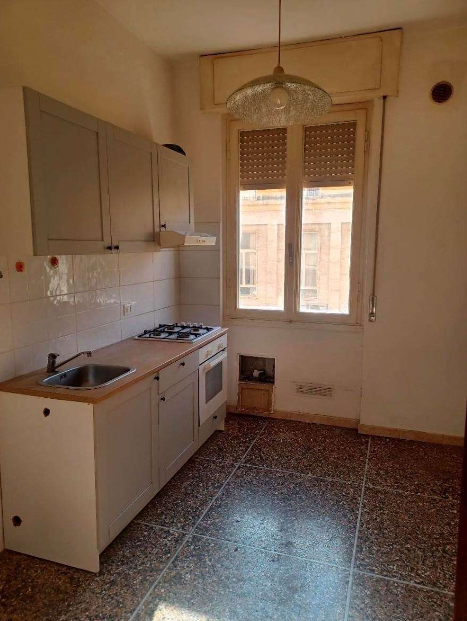 Composto da cucina, sala, disimpegno a servizio delle due camere una singola e una matrimoniale e bagno con finestra.