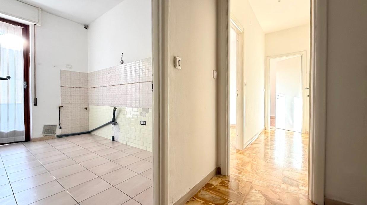 Ci accoglie un ampio ingresso, facilmente attrezzatile come guardaroba e dal quale raggiungiamo il soggiorno, con uscita sul primo dei due balconi che corredano lappartamento.