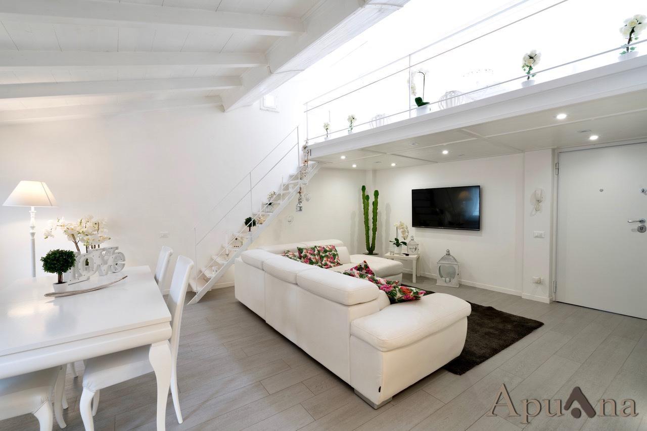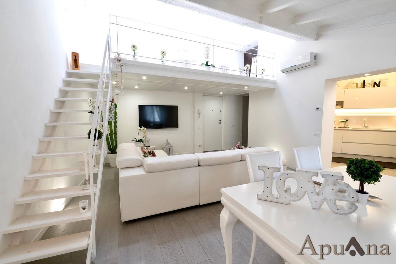 ***.*******.** DNA-182 - Massa - Centro Storico, fuori dalla ZTL e lontano dalla movida notturna, appartamento al terzo ed ultimo piano di piccola palazzina ben mantenuta e dotata di ascensore, di sole 3 unità. L'immobile si compone di ingresso su ampio e luminoso soggiorno con soppalco che rende particolare la zona giorno, zona cottura in posizione riservata con moderna cucina su misura; zona notte con due camere matrimoniali di cui una con cabina armadio, due bagni e ripostiglio con lavanderia.