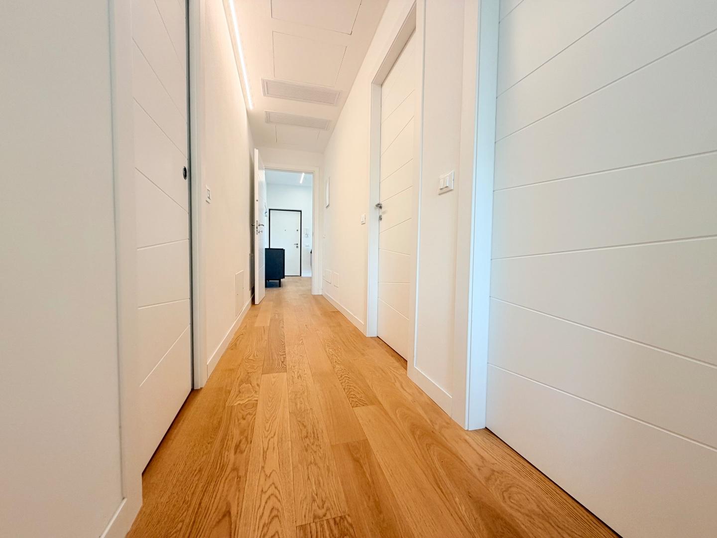 Un comodo disimpegno conduce alla zona notte composta da due vere camere matrimoniali e due bagni entrambi con doccia, curati nei dettagli e realizzati con finiture moderne.