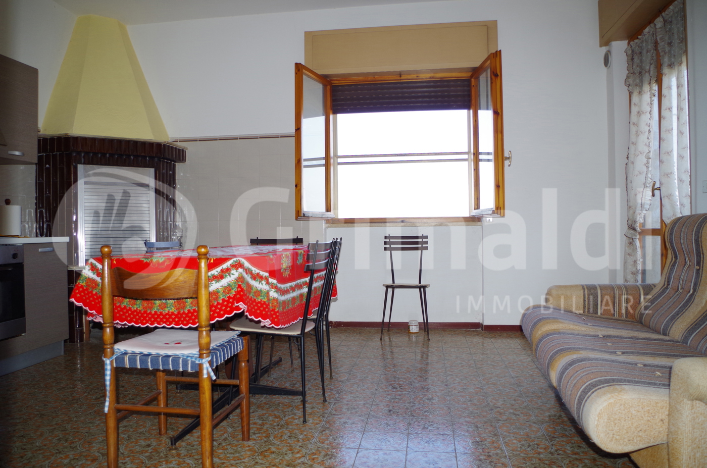 Limmobile si distingue per la generosa metratura e la distribuzione ottimale degli ambienti: cucina abitabile con camino, ampio soggiorno luminoso, tre camere da letto, comodo ripostiglio e doppi servizi.