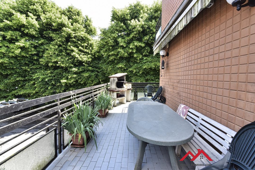 PLANIMETRIA CATASTALE IN FASE DI AGGIORNAMENTO.\nSoluzione è così composta:\nIngresso, ampio soggiorno con uscita su balcone, cucina abitabile con comodo terrazzo primo bagno ed ulteriore locale lavanderia oltre ad un ripostiglio.\nDa una comoda scala interna rifinita in marmo bianco e ferro battuto si accede al piano superiore adibito a zona notte, completo di camera matrimoniale con cabina armadio e bagno privato, due ampie camerette con uscita su balconi privati, bagno padronale e ripostiglio.\nL'appartamento è stato corredato da optional di altissima qualità come parquet in ulivo zanzariere climatizzatori in tutte le stanze, termo-arredi.\nIdeale per un nucleo familiare, dove si può godere di ottimi spazi interni per via dell'ampia metratura ed esterni grazie al terrazzo, ma nello stesso tempo essere a pochi passi da tutti i servizi che Melzo mette a disposizione.