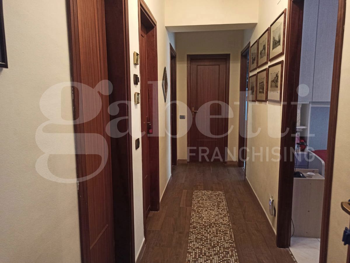 Il corridoio divide poi la zona notte con tre camere da letto, doppi servizi e ripostiglio.