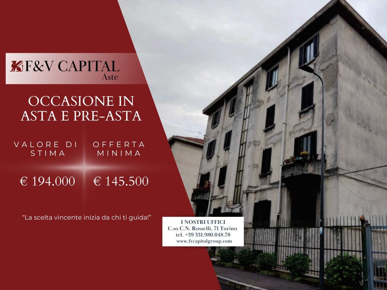 F and V CAPITAL aste di Torino propone in vendita questo immobile, contattali subito!