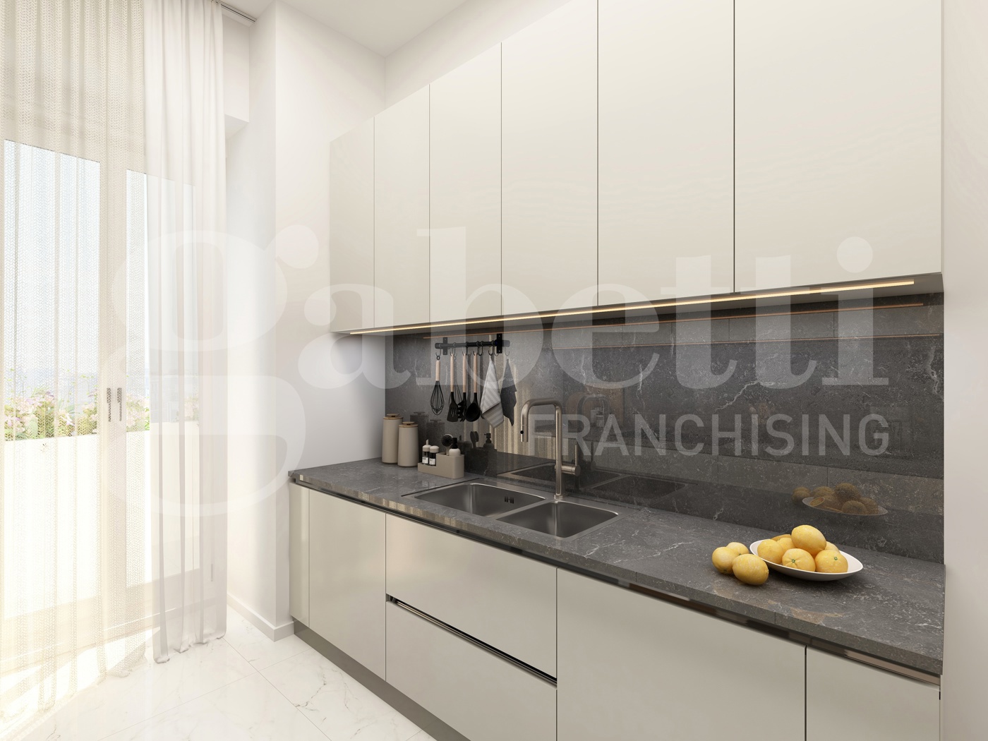 L'immobile, sito al piano terra, si distingue per la disposizione funzionale e armoniosa degli spazi: ingresso su ampia zona living, disimpegno con armadiatura su misura che conduce allo studio/cameretta, cucina abitabile con grazioso balcone, bagno finestrato con vasca e zona lavanderia.