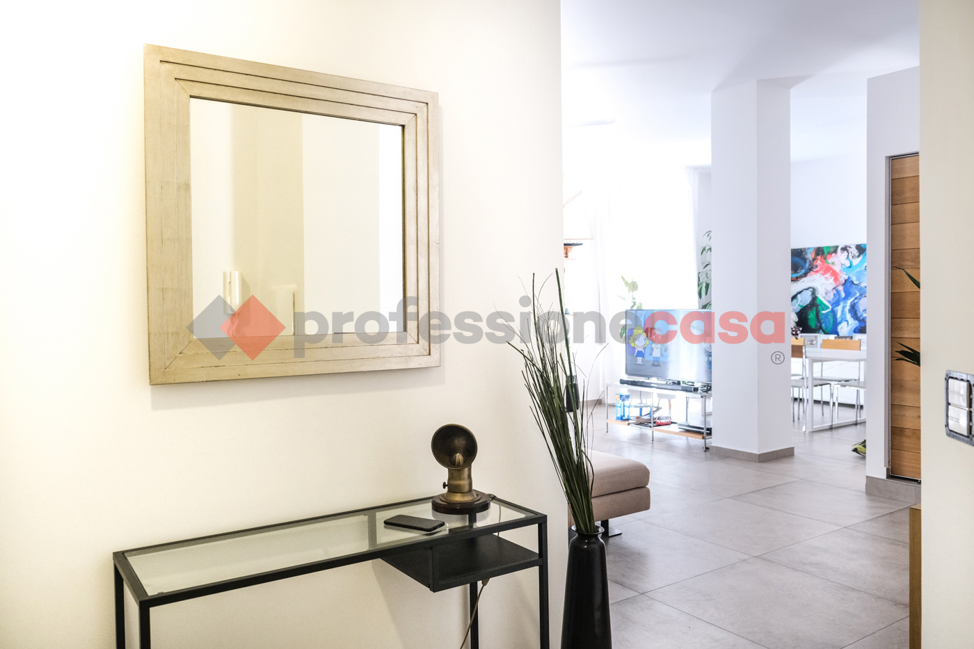 Lappartamento dispone di 2 ingressi, un ampio living open space con cucina a vista, 3 camere da letto, 2 cabine armadio, 3 bagni, disimpegno alla zona notte, giardino dinverno/relax fitness, terrazzo e balcone.