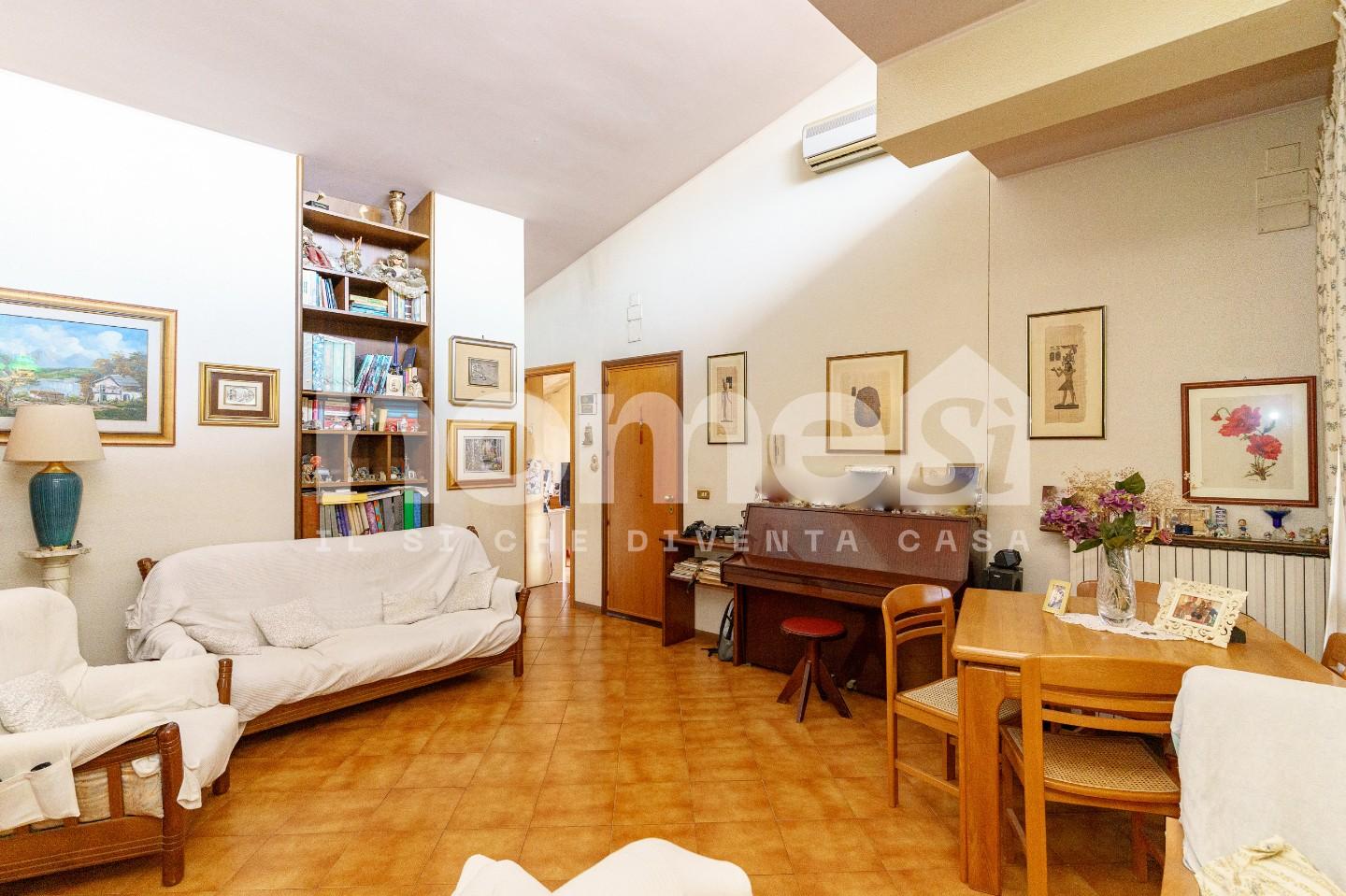 L'immobile è situato al terzo di uno stabile in buone condizioni edificato negli anni 70' La superficie totale dell'immobile è di circa 115 mq interni e un doppio balcone di 15 mq, così distribuiti: ingresso, una camera da letto matrimoniale, due camere da letto singole, ampio soggiorno con camino, cucina, bagno e lavanderia con secondo servizio.