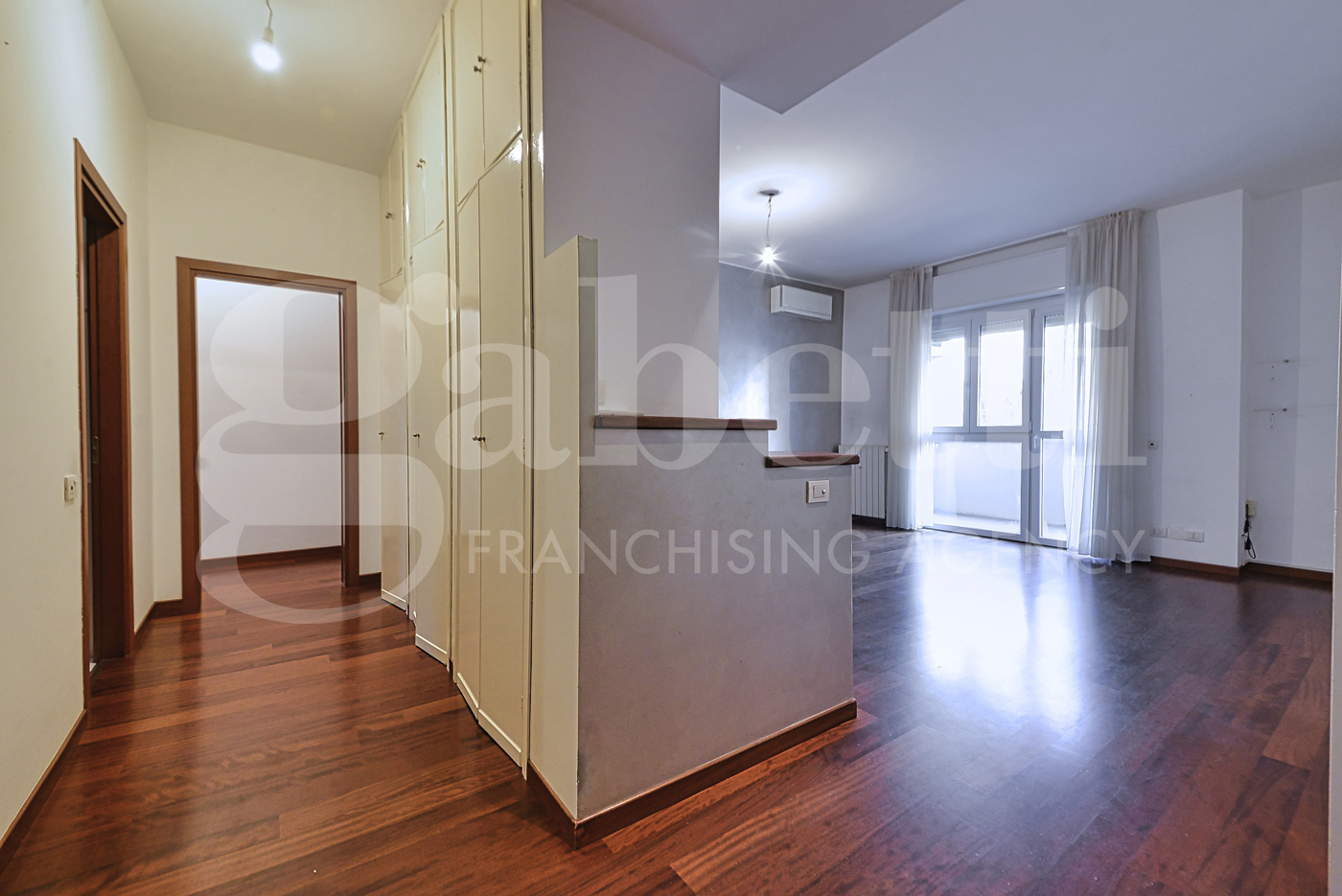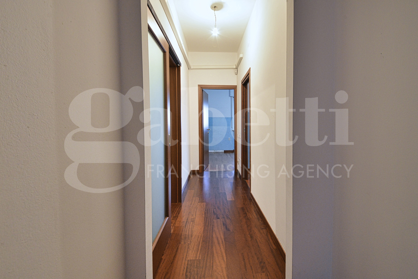 Disimpegno che separa nettamente la zona giorno dalla zona notte composta da due camere matrimoniali, una camera singola ed un ampio bagno padronale.