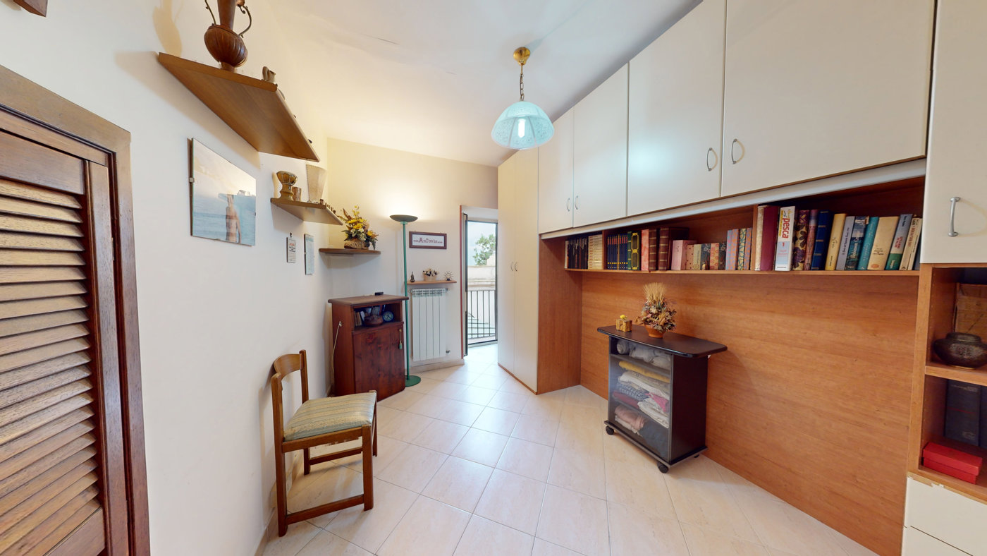 Continuando a salire troviamo una camera da letto con armadiatura a muro e un bagno.