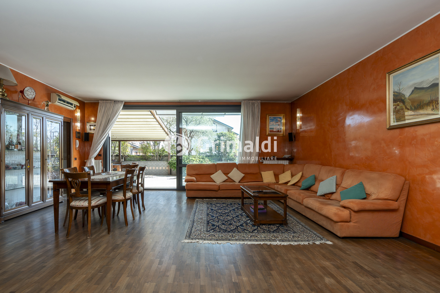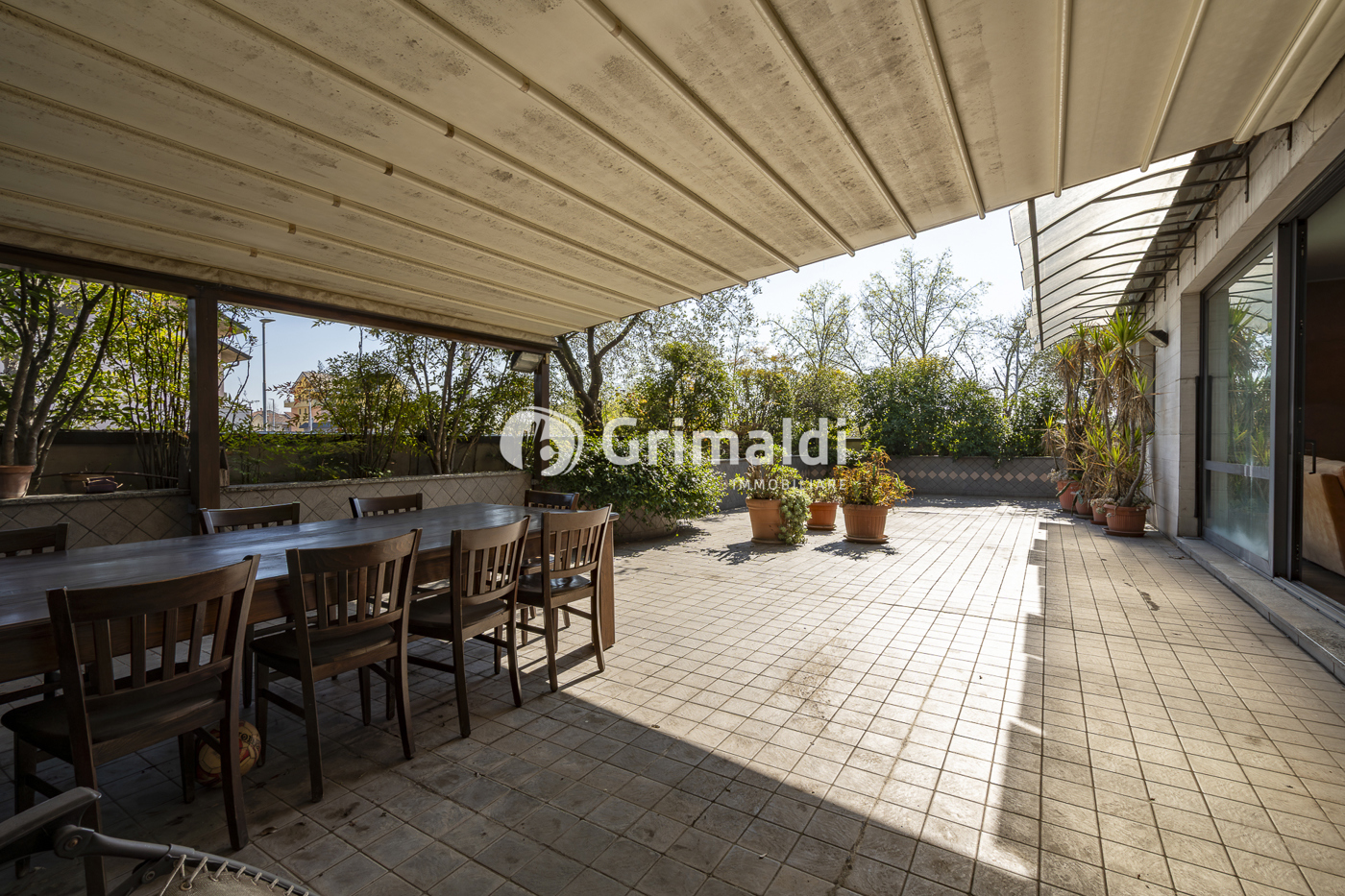 La zona giorno dominata da un salone doppio di rappresentanza, con accesso diretto allo straordinario terrazzo di 123 mq: una vera estensione esterna della casa, ideale per cene conviviali, zone lounge all'aperto o un giardino pensile privato in totale riservatezza.