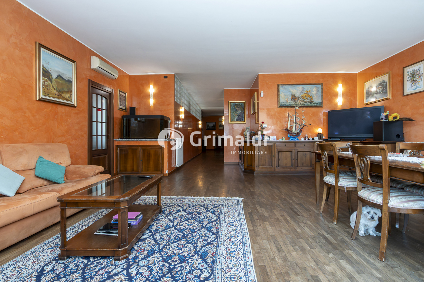 Limmobile frutto di una progettazione accurata, con finiture di design che includono infissi in legno con doppio vetro, aria condizionata e pavimentazioni di pregio.