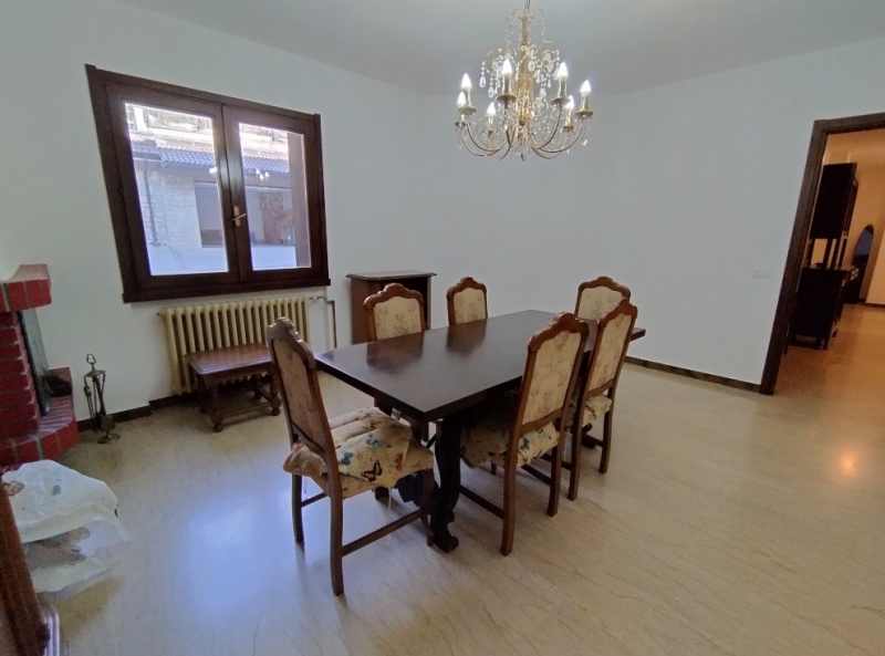 Ampio disimpegno di ingresso, soggiorno con camino a legna, cucina abitabile, bagno e due camere matrimoniali.