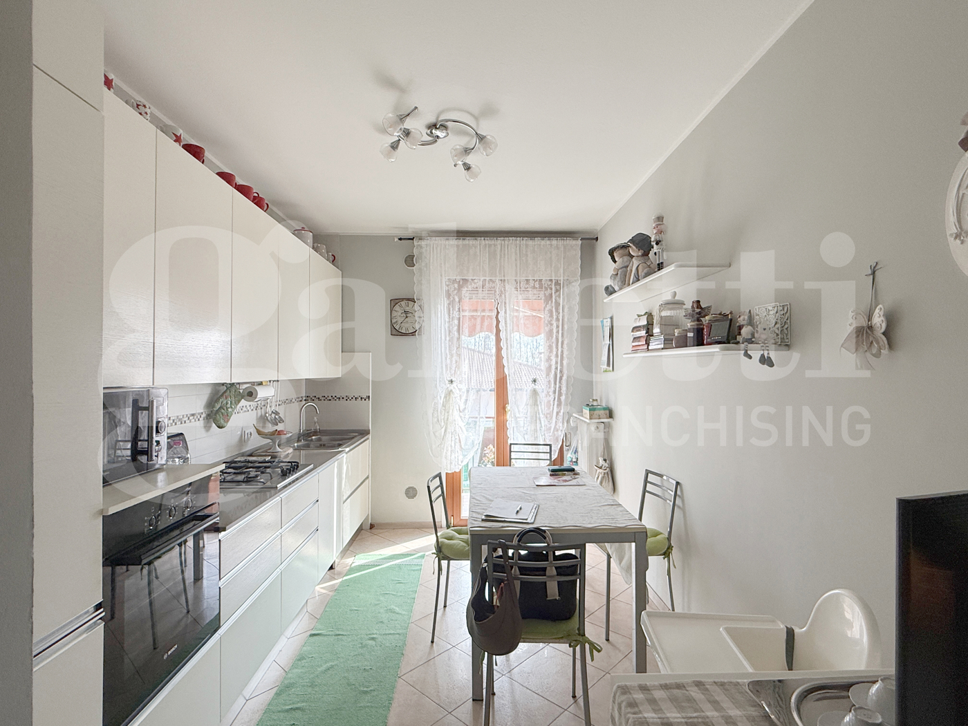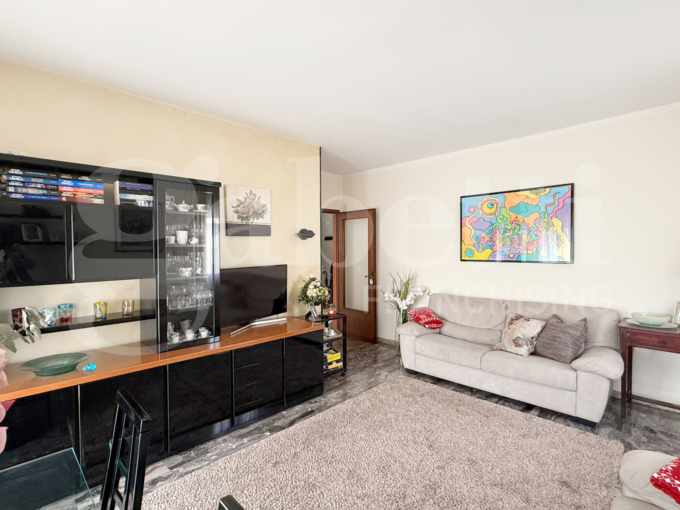 L'immobile che gode di dimensioni ampie, tipiche delle case di quegli anni, si presenta in condizioni ottimali e si compone di: ingresso, con soggiorno molto luminoso con uscita sul terrazzo e cucina separata e abitabile collegata anch'essa al terrazzo.