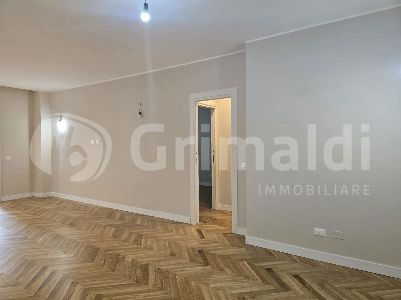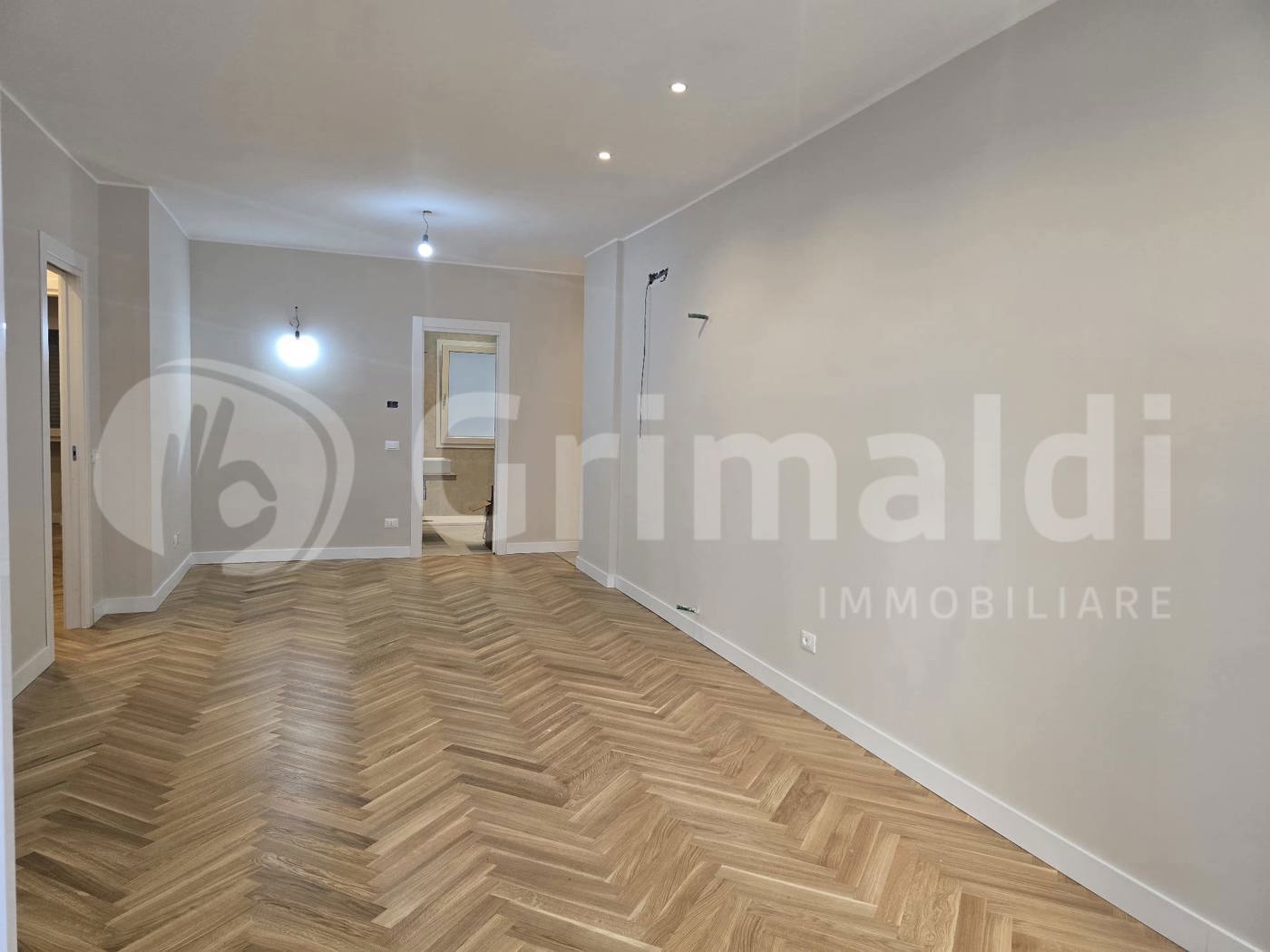 Composto da: ingresso su disimpegno, cucina a vista e ampio balcone verandato su retroprospetto con angolo lavanderia e predisposizione per angolo cottura, salone pari a 2 vani con balcone su prospetto principale, 2 servizi, 2 camere da letto di cui una con cabina armadio e wcd. Rifiniture di pregio, totalmente parquettato con listoni a lisca di pesce ad eccezione dei servizi in gres, infissi in pvc filo muro bianchi taglio termico con serrande elettriche, porte interne in legno bianche a scrigno, luci e faretti led, predisposizione riscaldamento e pompe di calore, porta d'ingresso blindata.
